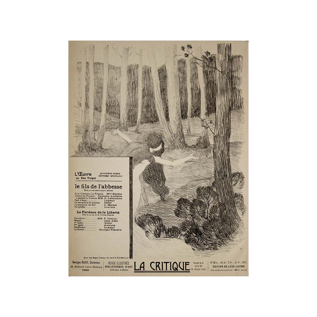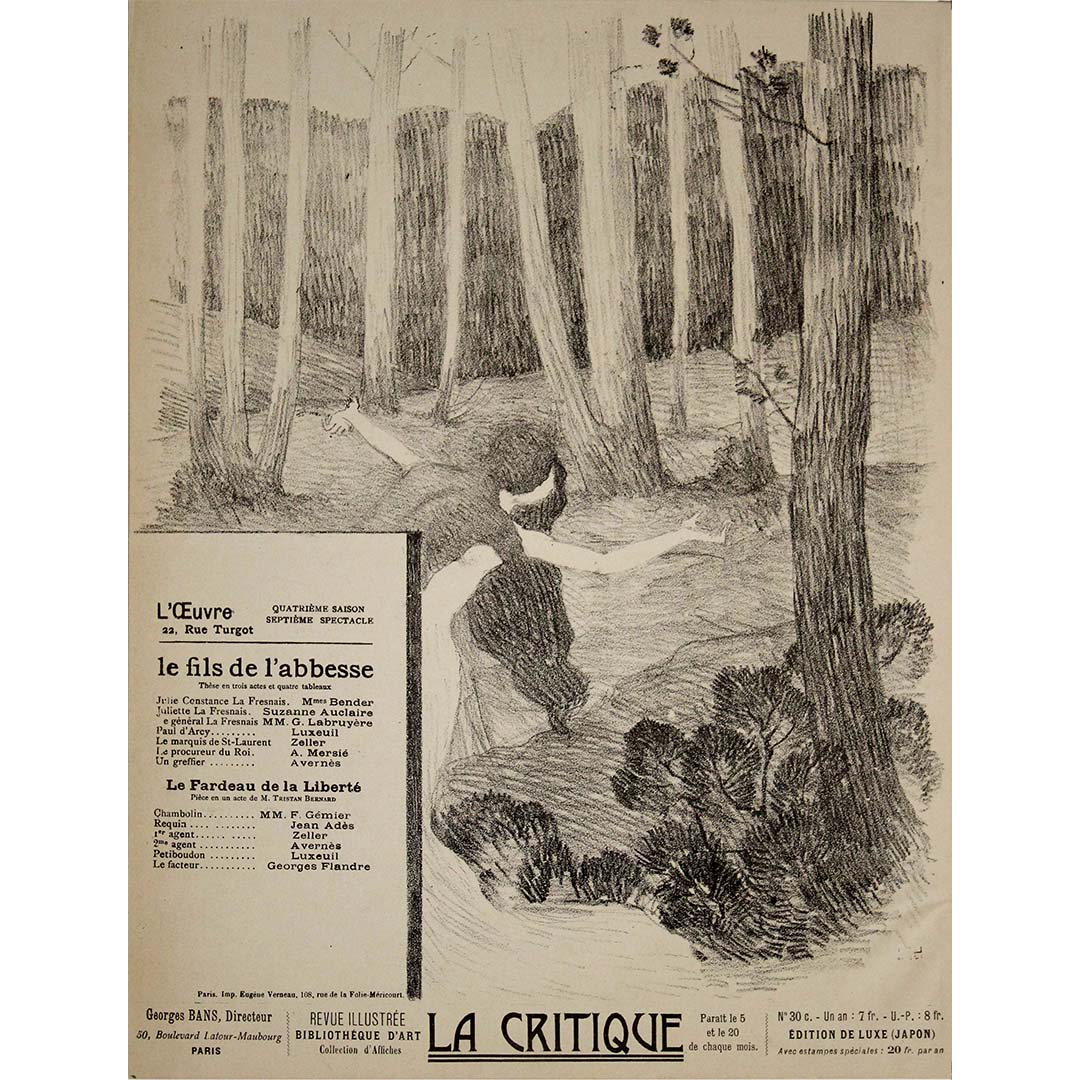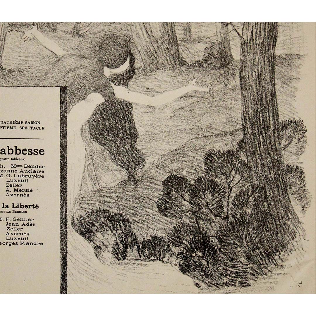 Lebasque, qui deviendra célèbre pour ses toiles post-impressionnistes lumineuses, apporte à cette œuvre une sensibilité subtile mais résolument moderne. Sa couverture pour le programme double « Le Fils de l'Abbesse » et « Le Fardeau de la Liberté » reflète la profondeur psychologique et la tension contenue de ces pièces. Refusant toute flamboyance théâtrale, la composition privilégie une palette sobre, un trait lyrique et une atmosphère calme et contemplative, en accord avec l'esthétique symboliste.