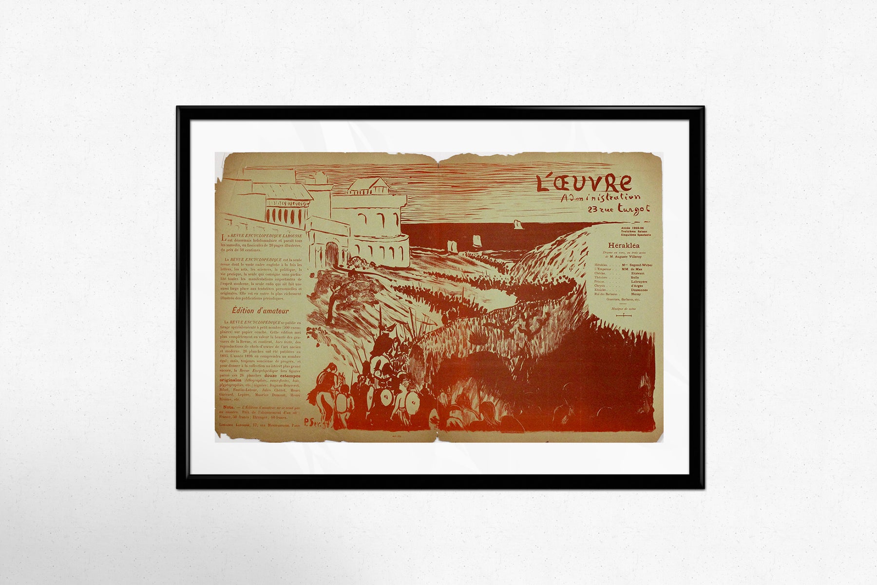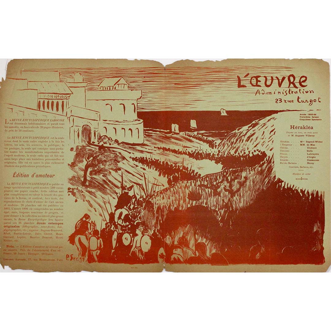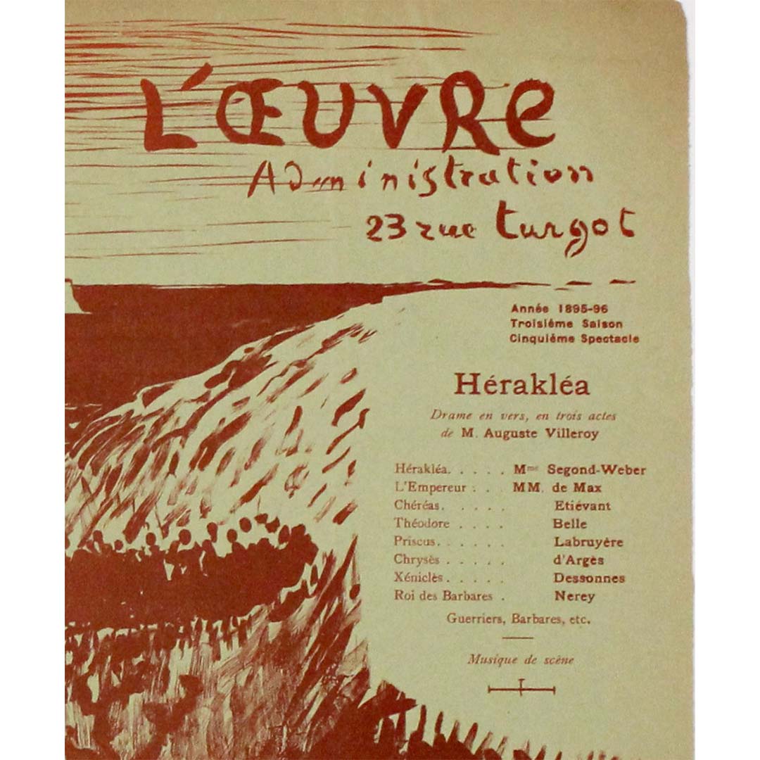 Ce remarquable programme lithographique fut créé par Paul Sérusier, peintre et théoricien nabi visionnaire, pour la représentation de 1896 d' Hérakléa , drame d'Auguste Villeroy d'inspiration classique. La pièce fut mise en scène au Théâtre de l'Œuvre, berceau parisien du théâtre symboliste sous Lugné-Poe.