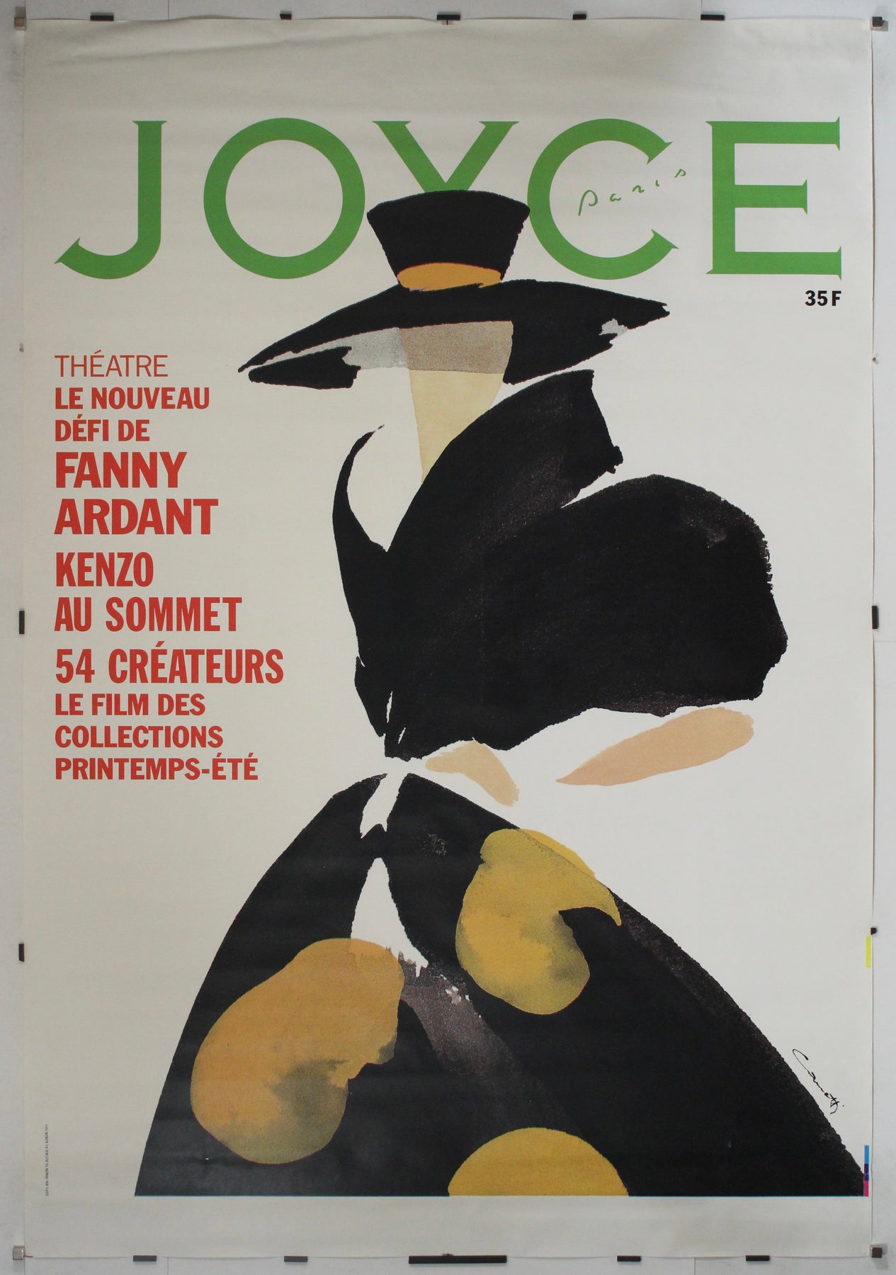 Cette élégante affiche originale a été créée en 1990 pour Joyce Paris , le concept-store et magazine parisien d'avant-garde devenu un symbole de la culture de la mode d'avant-garde à la fin du XXe siècle. Plus qu'un simple commerce de détail, Joyce était une plateforme pour le style, la performance et l'expérimentation éditoriale — un espace où le design, l'art et la haute couture se rencontraient.