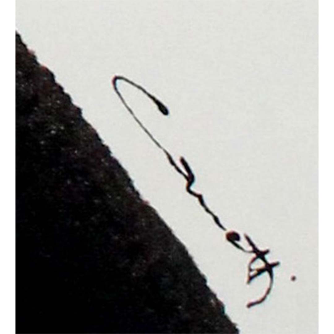 L'œuvre est signée Michel Canetti, l'un des illustrateurs de mode français les plus accomplis. Reconnu pour ses lignes sensuelles et ses silhouettes d'une élégance naturelle, Canetti distille l'essence de la haute couture avec une audacieuse économie de gestes. Ici, sa figure – une femme stylisée en noir, chapeau bas baissé – exhale mystère et assurance. Sa jupe volumineuse, ponctuée de motifs dorés picturaux, insuffle mouvement et vitalité à la composition. Le coup de pinceau de Canetti suggère à la fois immédiateté et raffinement, capturant l'univers éphémère de la mode avec un impact graphique durable.
