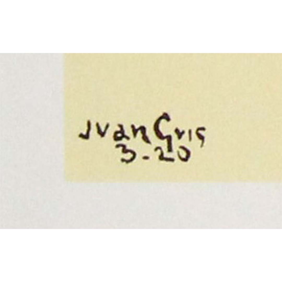 Cette reproduction d'affiche a été réalisée selon des normes de qualité élevées sous la direction de Silvio Zamorani, éditeur d'art renommé basé à Turin, en Italie, reconnu pour diffuser des estampes de qualité muséale auprès d'un large public. Elle comprend la signature et la date de l'œuvre originale (Juan Gris, 5-20) en fac-similé en bas à gauche, et présente le nom de l'artiste de manière simple et élégante sous l'image : « JUAN GRIS ».