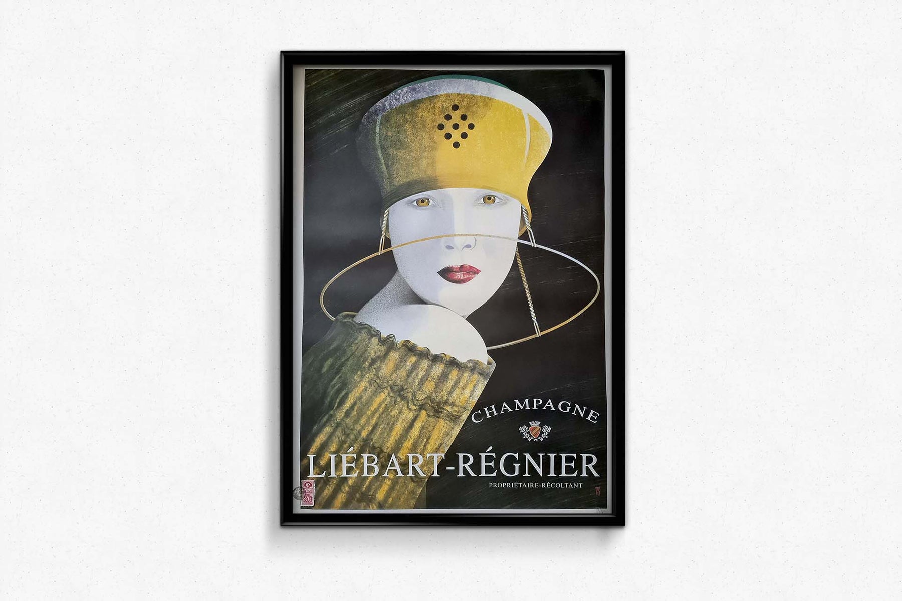 Au centre de l'affiche, le nom de la marque de champagne Liébart Régnier est mis en valeur, entouré d'images qui évoquent l'opulence et le raffinement associés à ce mets. Qu'il s'agisse d'une occasion spéciale ou d'une réunion informelle, le champagne Liébart Régnier est présenté comme l'accord parfait, incarnant la joie de vivre.