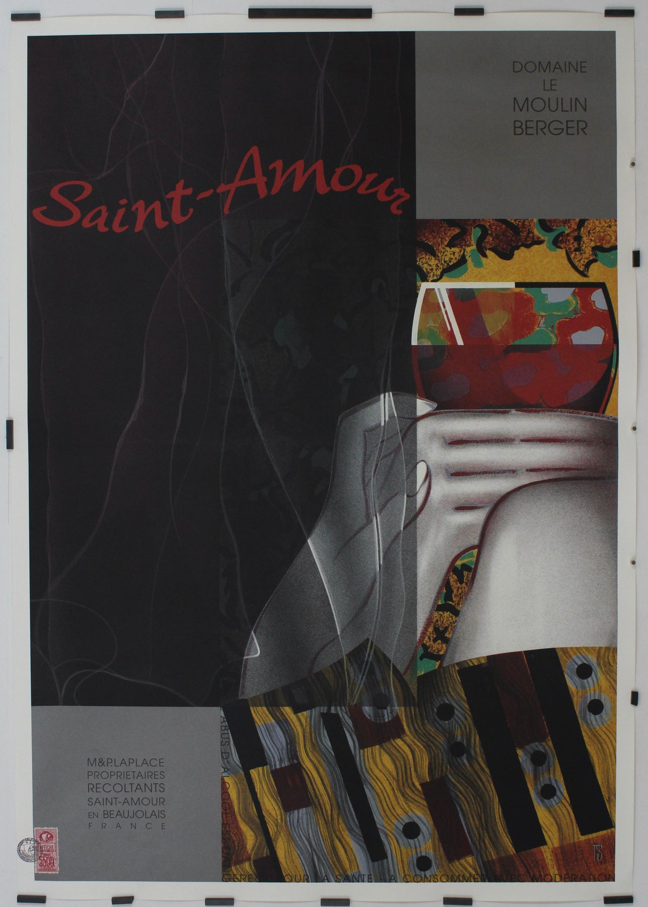 Au-delà de sa fonction publicitaire, l'affiche de Philippe Sommer occupe une place unique dans le monde des objets de collection œnophiles. Elle symbolise l'engagement du Domaine Le Moulin Berger à présenter Saint Amour non seulement comme un vin, mais aussi comme un instant fugace de romance, capturé par la poésie visuelle de l'artiste.