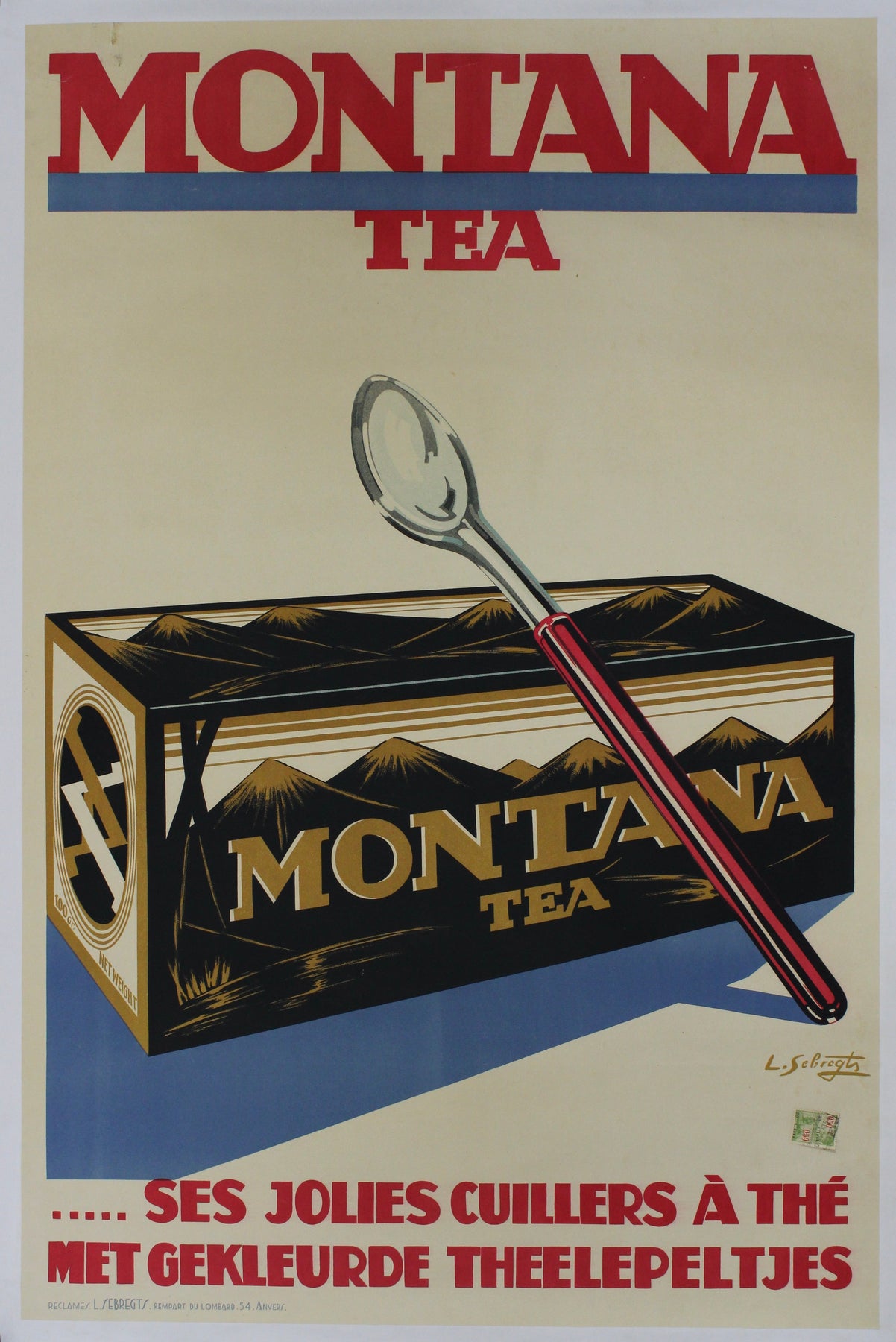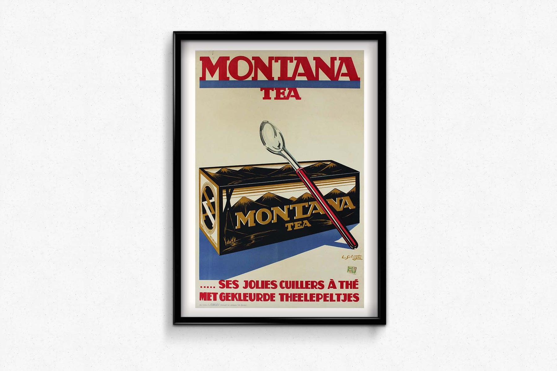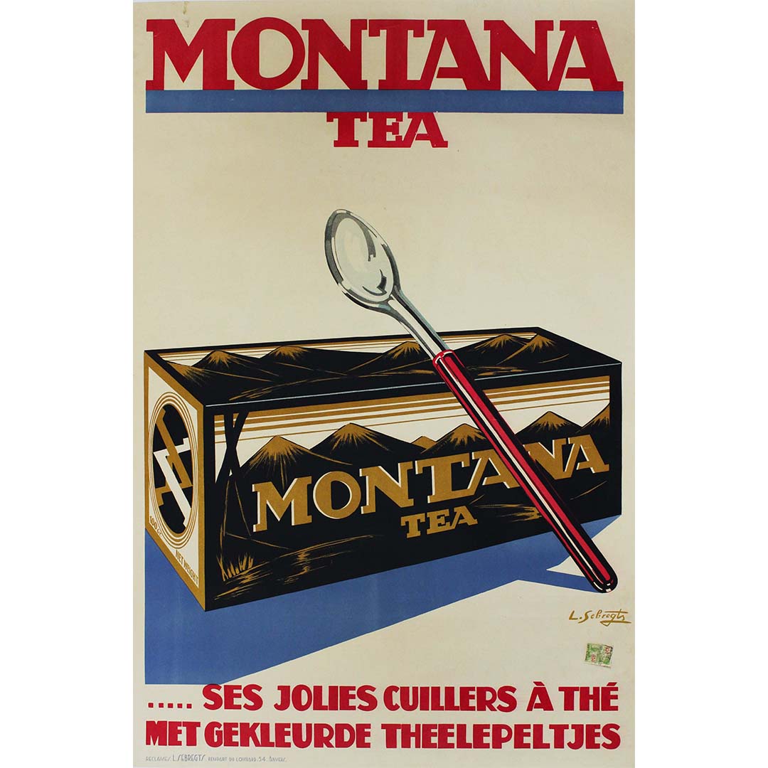 L'affiche originale de Sebregts pour Montana Tea, créée en 1930 et ornée de charmantes cuillères à thé, témoigne avec élégance de l'art de la narration visuelle et de l'raffinement inhérent à la culture du thé. Bien plus qu'une simple publicité, cette affiche iconique est une invitation captivante au cœur de l'univers du thé raffiné.