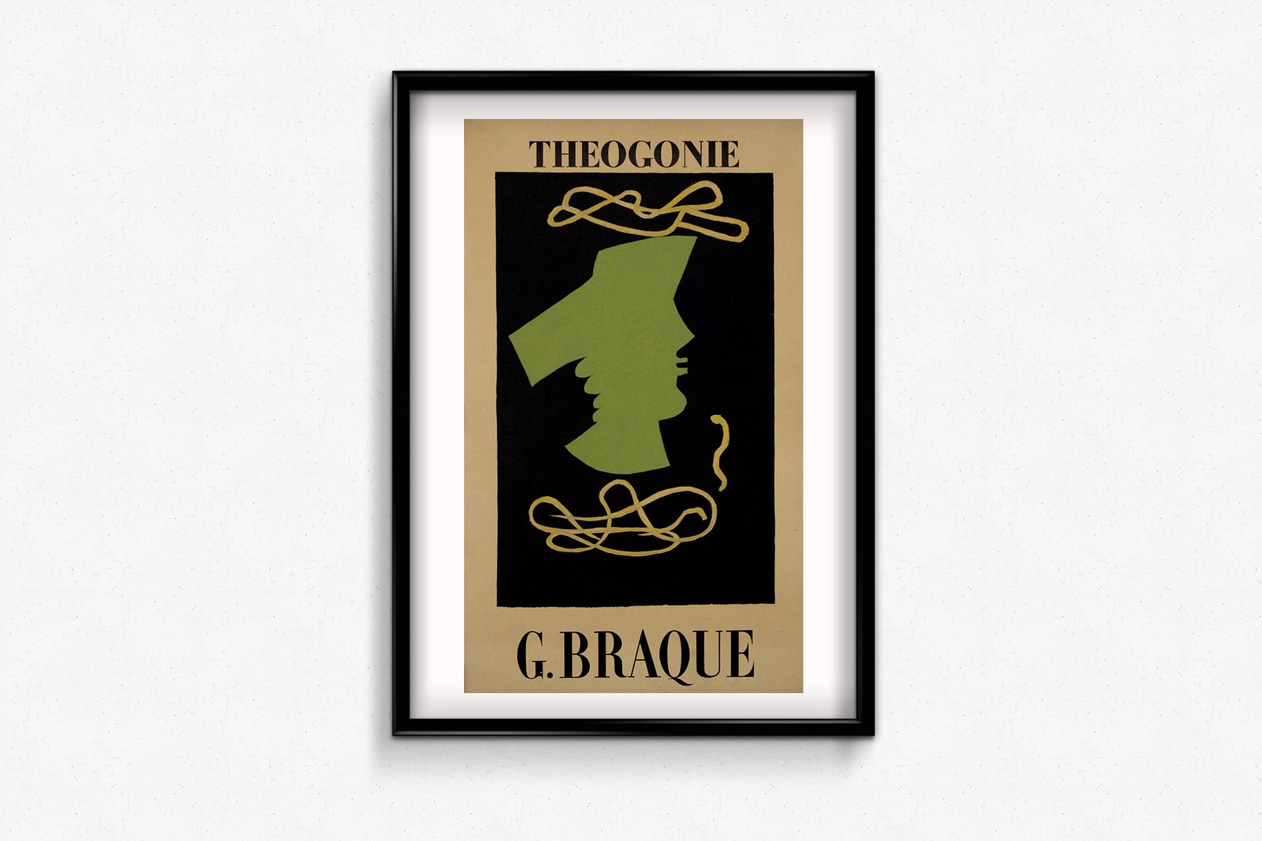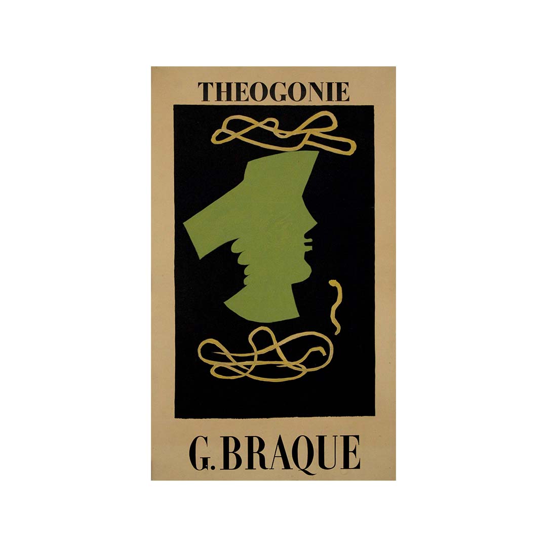 À la fin des années 1950, Braque, pionnier du cubisme aux côtés de Pablo Picasso, se tourne vers des sujets littéraires et mythologiques, qu'il mêle à son style caractéristique, fait de formes simplifiées et de textures riches. Sa série « Théogonie » s'inspire de l'épopée grecque antique d'Hésiode, qui narre l'origine des dieux et du cosmos. À travers cette œuvre, Braque fusionne la mythologie classique avec l'abstraction moderne, créant des compositions oniriques qui réinterprètent des mythes intemporels.