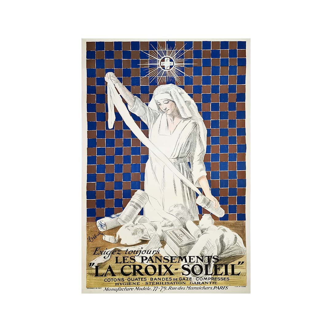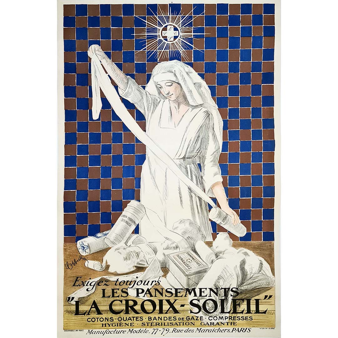 L'affiche originale des « Pansements La Croix Soleil » illustre à merveille le génie artistique de Cappiello. Grâce à ses couleurs vibrantes et à sa composition dynamique, elle métamorphose un sujet en apparence banal – les pansements – en une œuvre d'art captivante. La capacité de Cappiello à insuffler vie et charme aux objets du quotidien est manifeste dans cette création, où les pansements occupent une place centrale d'une manière visuellement saisissante.