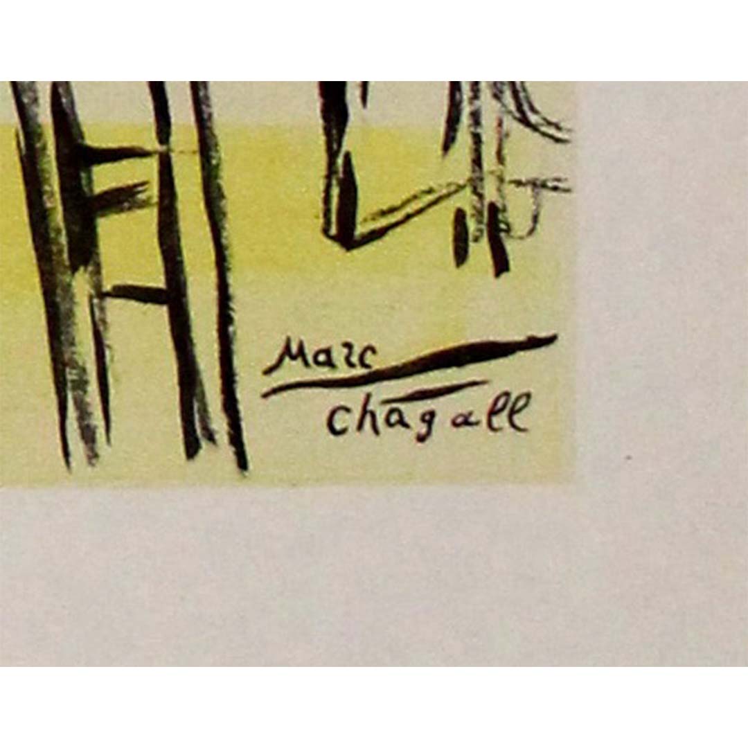 Cette version, créée avant l'ajout du texte, permet à l'œuvre de s'exprimer pleinement, affranchie des contraintes des informations promotionnelles. L'affiche présente les motifs caractéristiques de Chagall — figures flottantes, couleurs vibrantes et une impression de mouvement lyrique — qui évoquent une atmosphère onirique. L'absence de texte souligne la pureté de l'expression artistique de Chagall, faisant de cette pièce une œuvre très recherchée par les collectionneurs et les amateurs d'art.