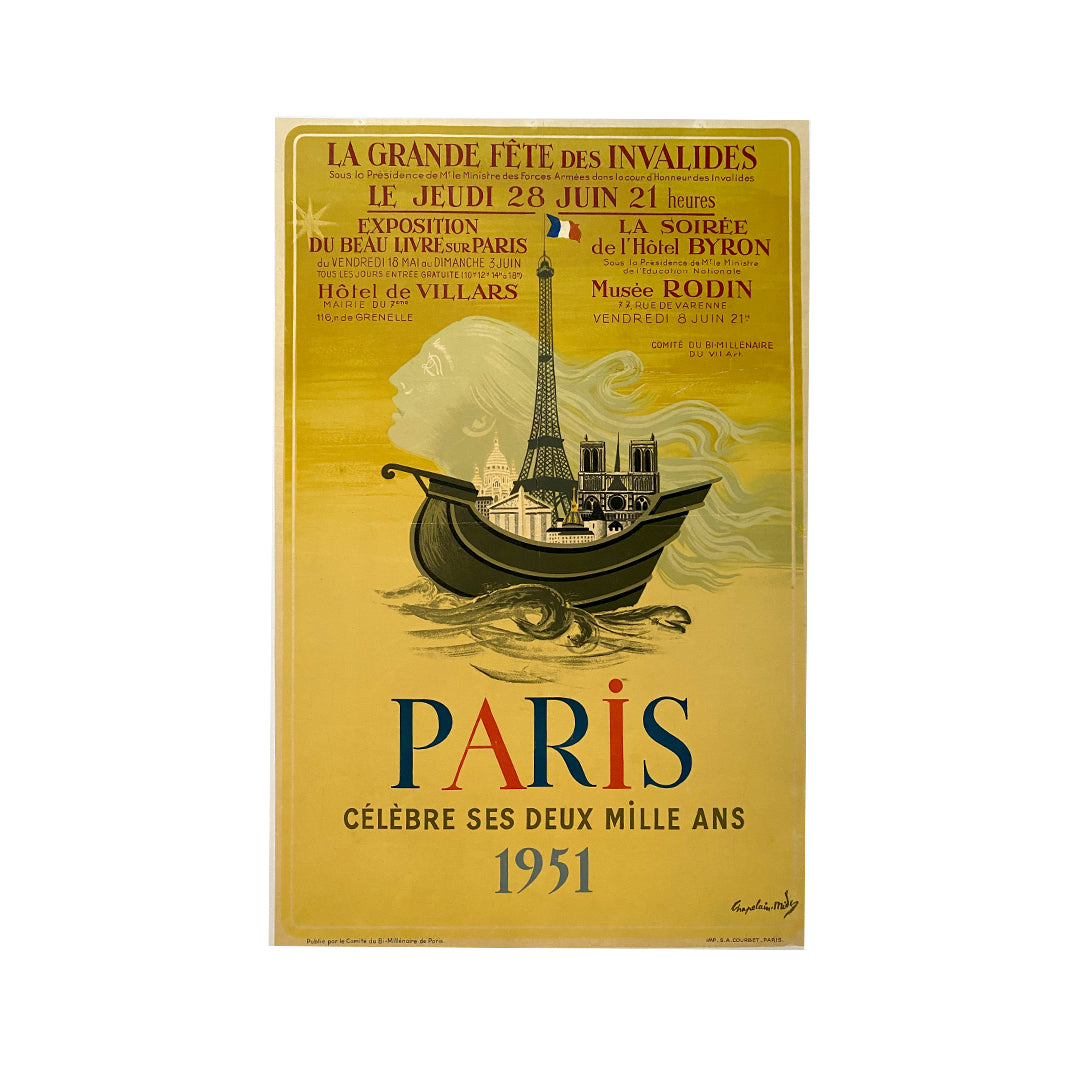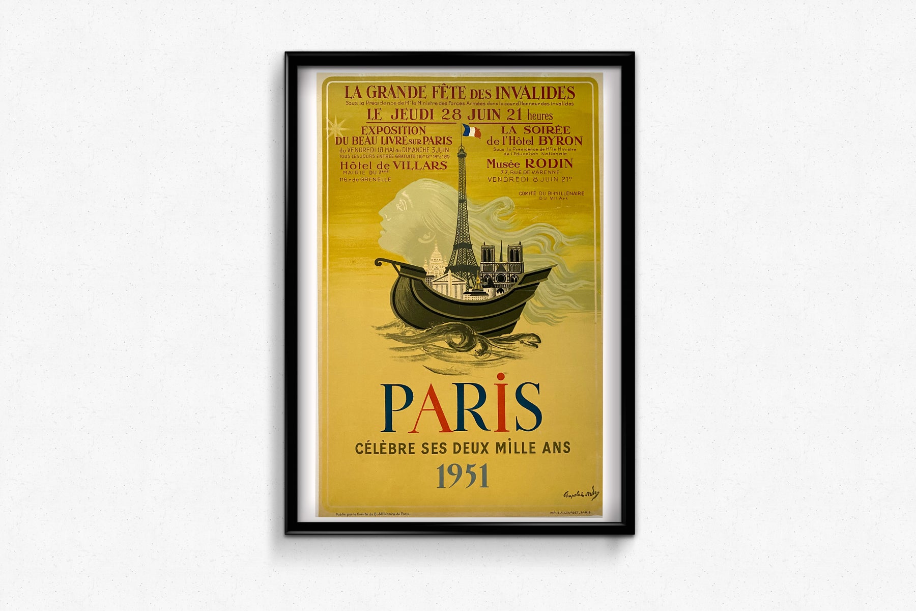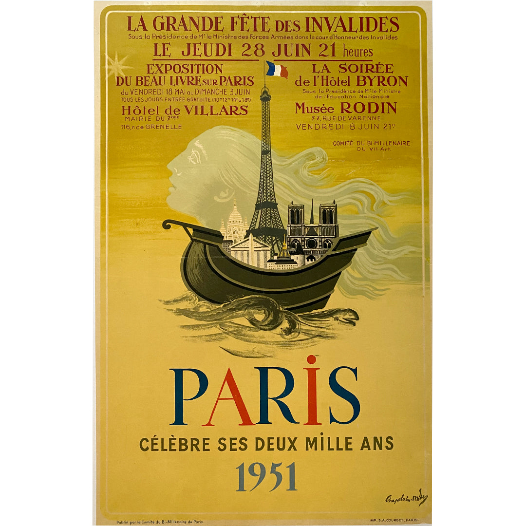 Affiche réalisée par Chapelain Midy pour promouvoir la grande fête des Invalides, pour la ville de Paris, qui célébrait en 1951 son bicentenaire.