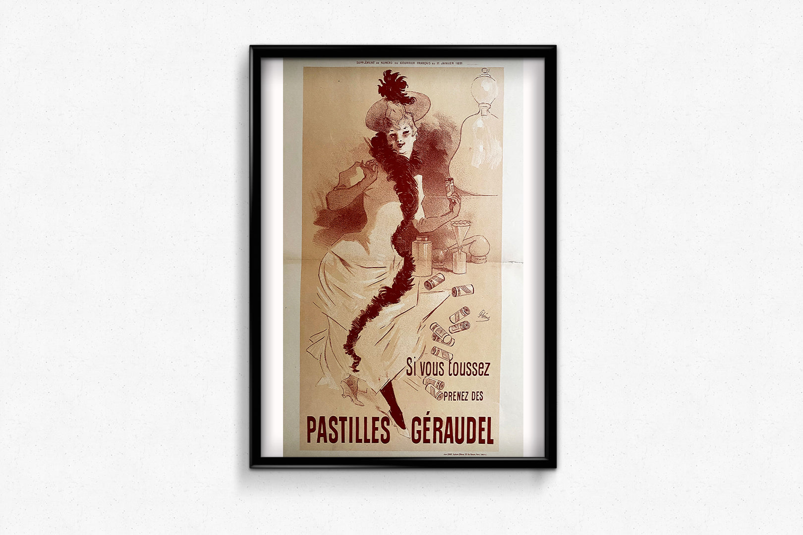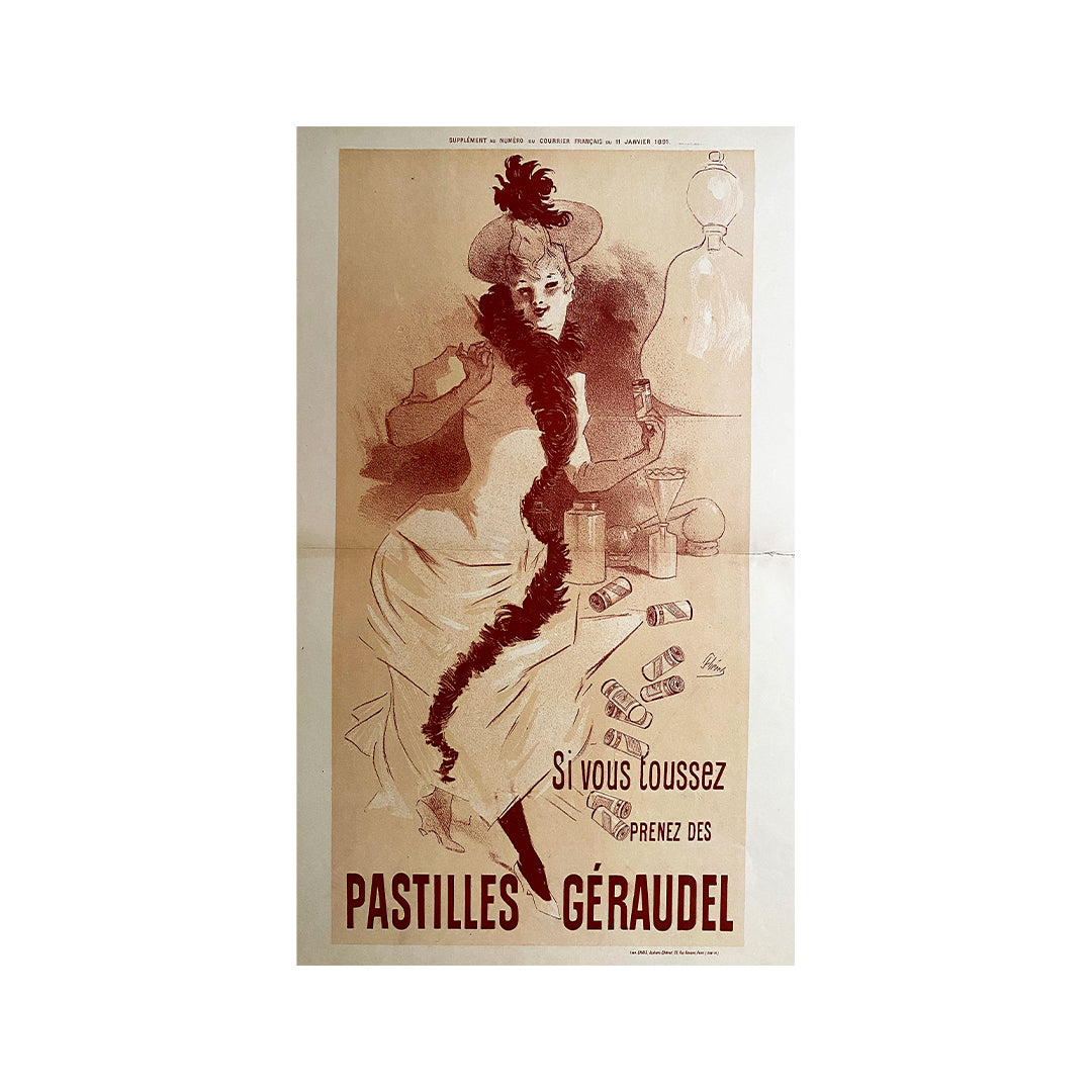 Sublime affiche de l'époque réalisée en 1891 par Jules Chéret 🇫🇷 (1836-1932) pour promouvoir les pastilles pour la gorge de la marque Géraudel.