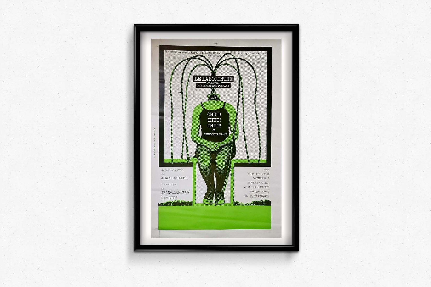 L'affiche de l'exposition de 1975 « Le labyrinthe collectif d'intervention poétique dans chut ! chut ! chut ! ou l'indicatif néant » de Roman Cieślewicz est une représentation visuelle saisissante de l'intervention poétique collective inspirée par l'œuvre de Jean Tardieu. Elle fut créée pour une exposition au Centre Georges Pompidou.