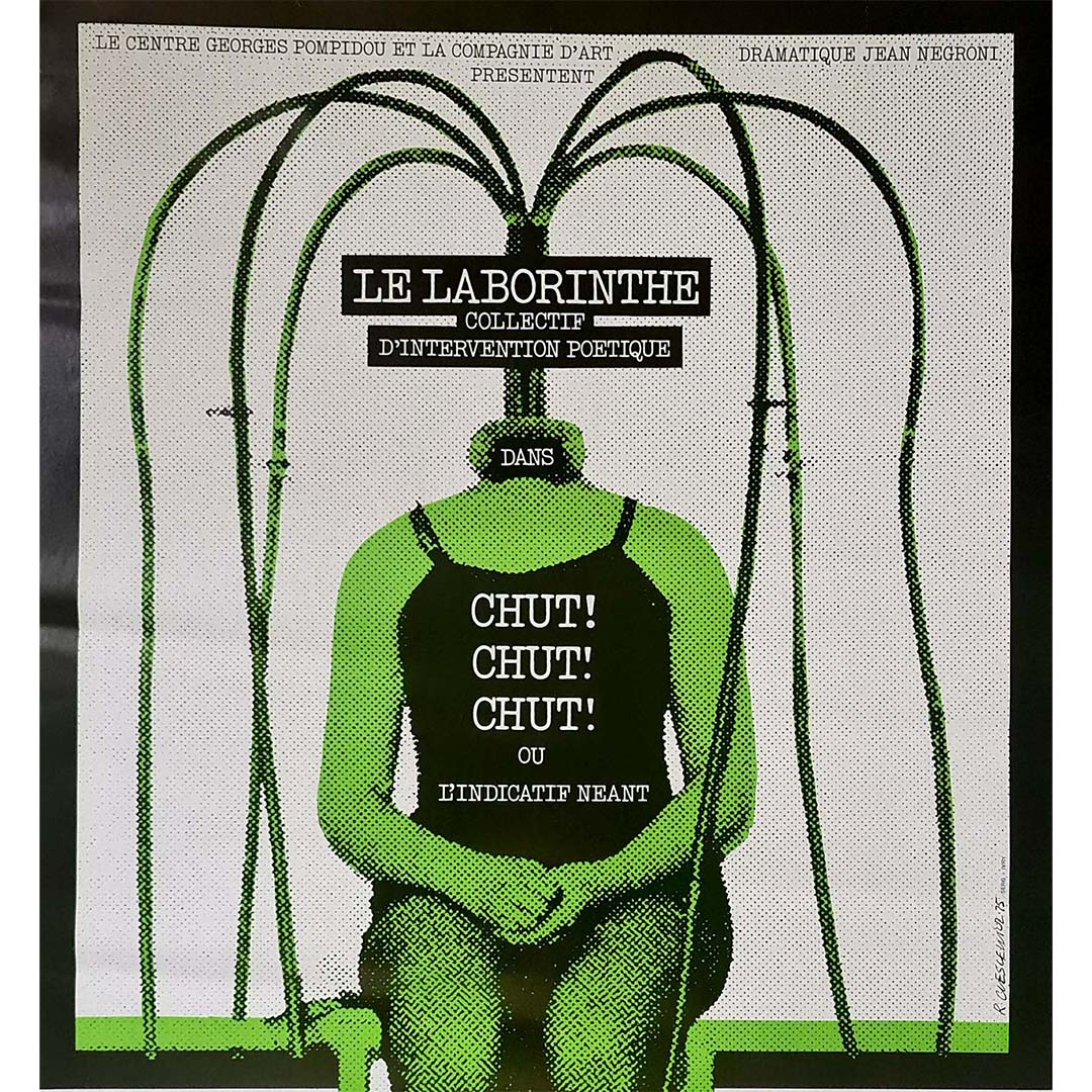 Roman Cieślewicz, graphiste et artiste franco-polonais de renom, était célèbre pour son langage visuel novateur et surréaliste. Cette affiche illustre sa capacité à fusionner graphisme et art conceptuel. Le titre, avec sa répétition de « chut ! chut ! chut ! », suggère une atmosphère feutrée et mystérieuse, invitant le spectateur à s'imprégner des éléments poétiques qu'elle recèle.