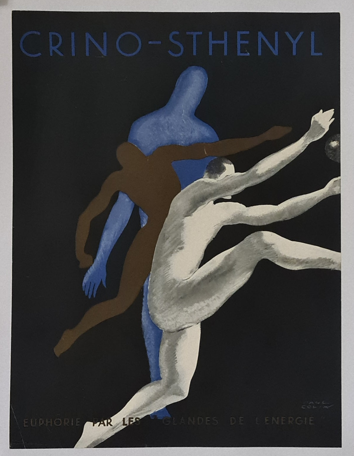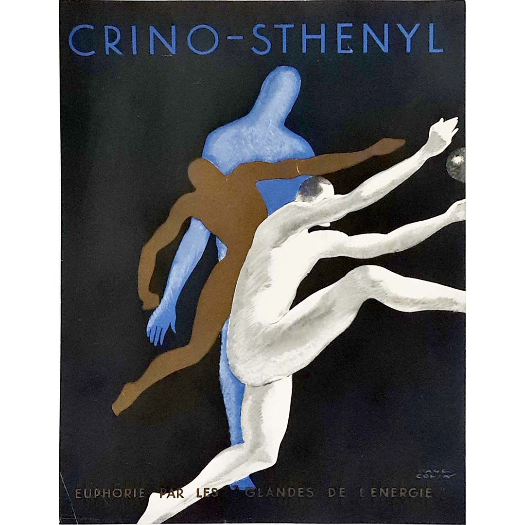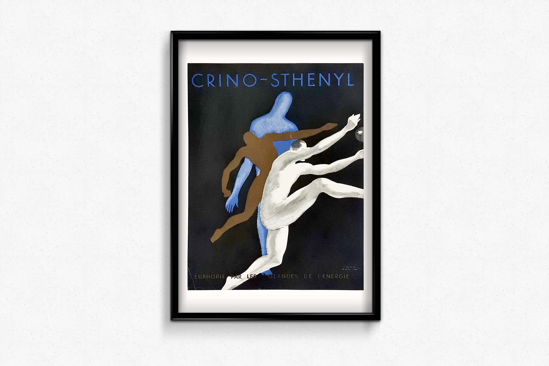 Affiche publicitaire originale de Paul Colin pour le Crinostenyl, un produit pharmaceutique utilisé pour le traitement des troubles endocriniens.