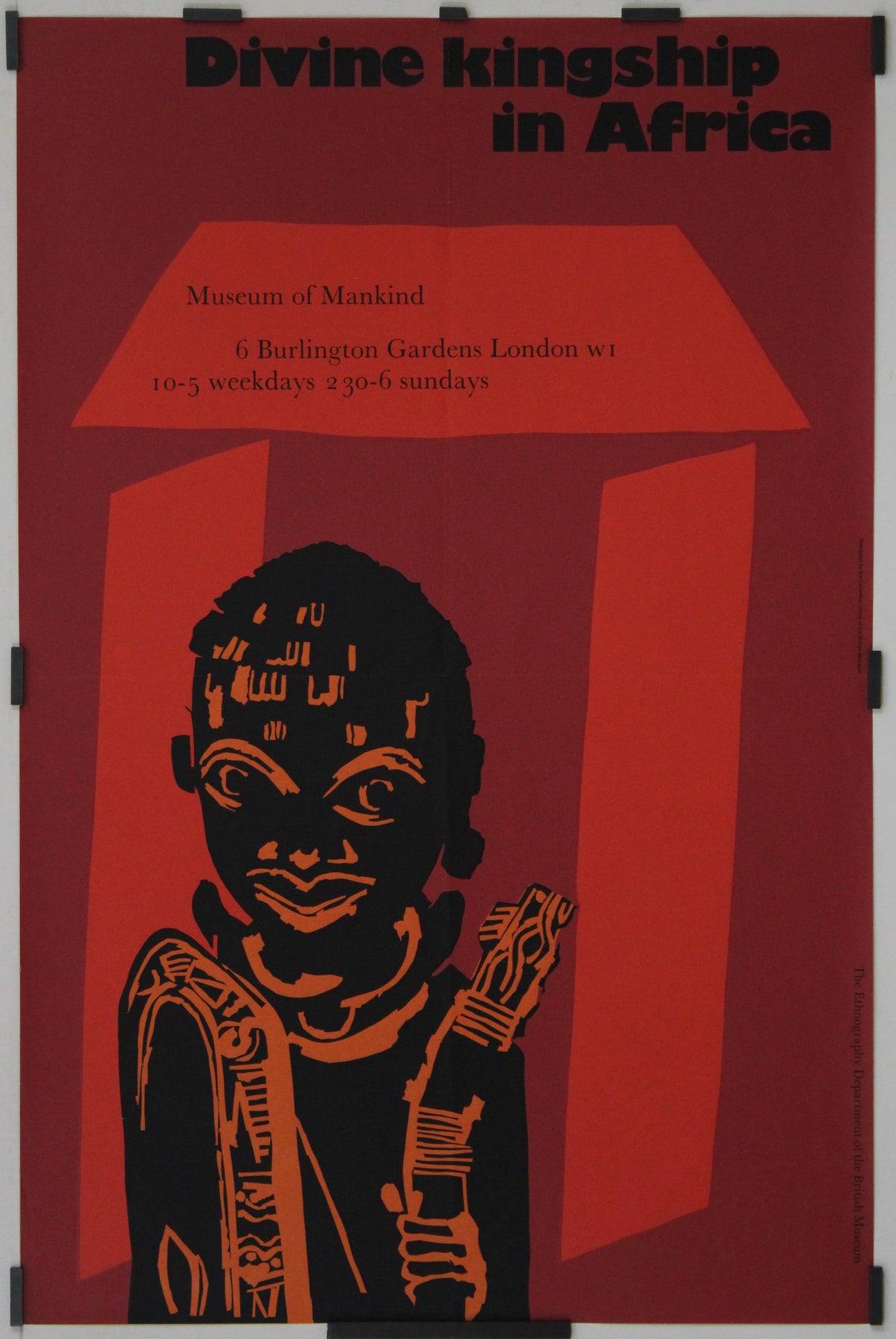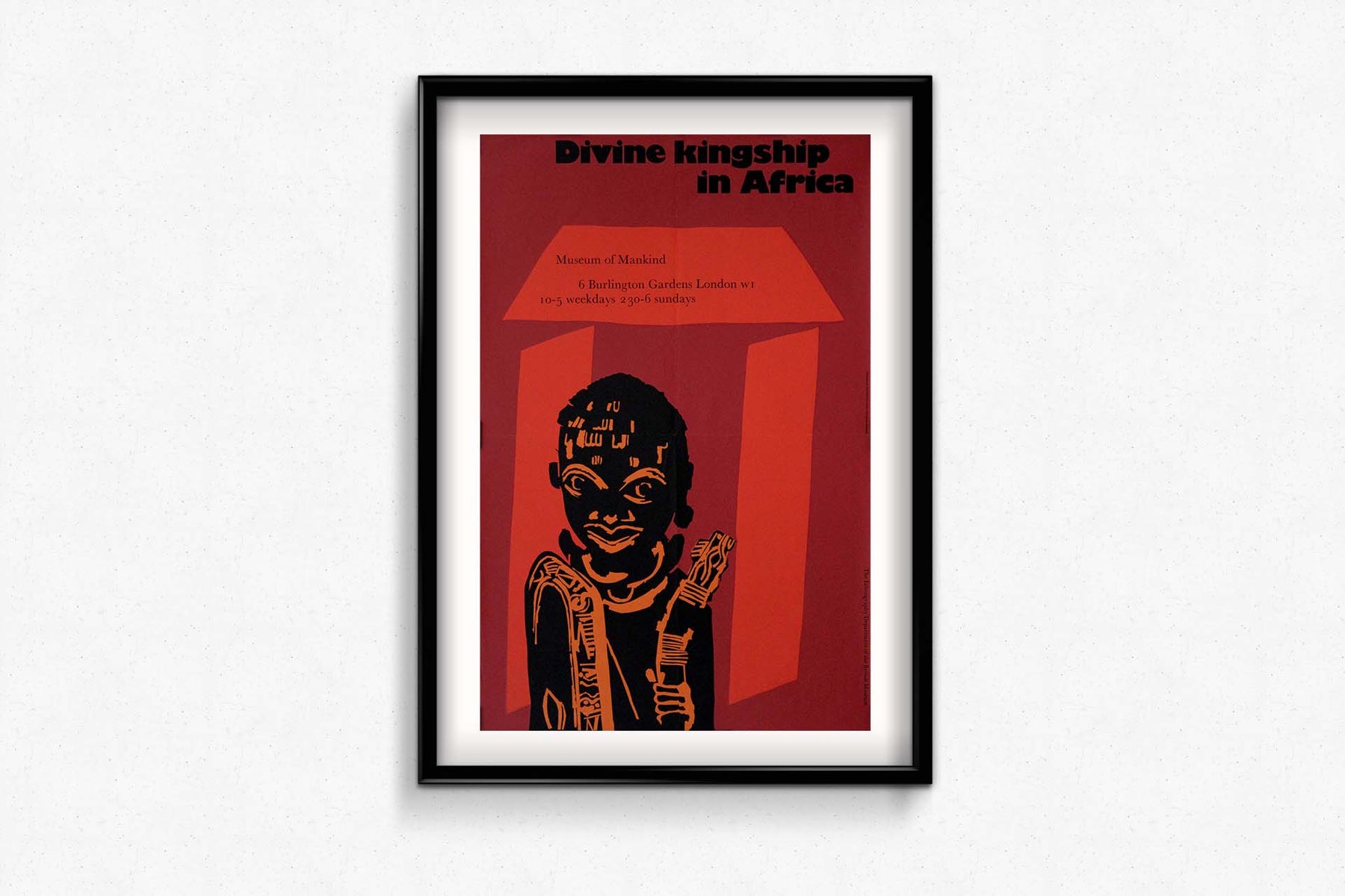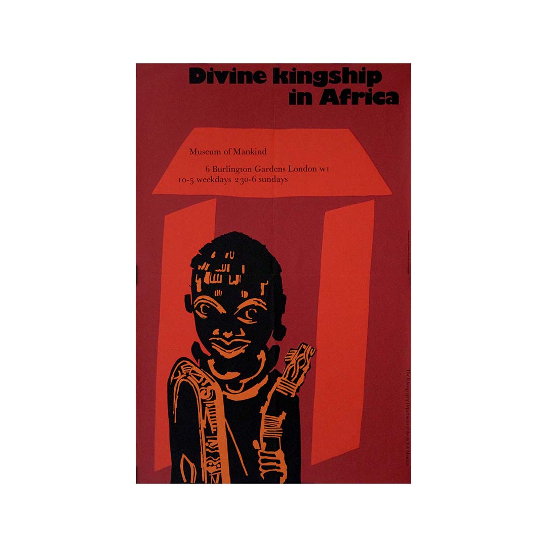L'affiche originale de l'exposition de 1970 intitulée « La royauté divine en Afrique », présentée au Museum of Mankind (département d'ethnographie du British Museum de Londres), constitue une pièce majeure du patrimoine culturel. Cette affiche annonçait une exposition importante qui explorait le concept complexe et profond de la royauté divine à travers différentes cultures africaines.