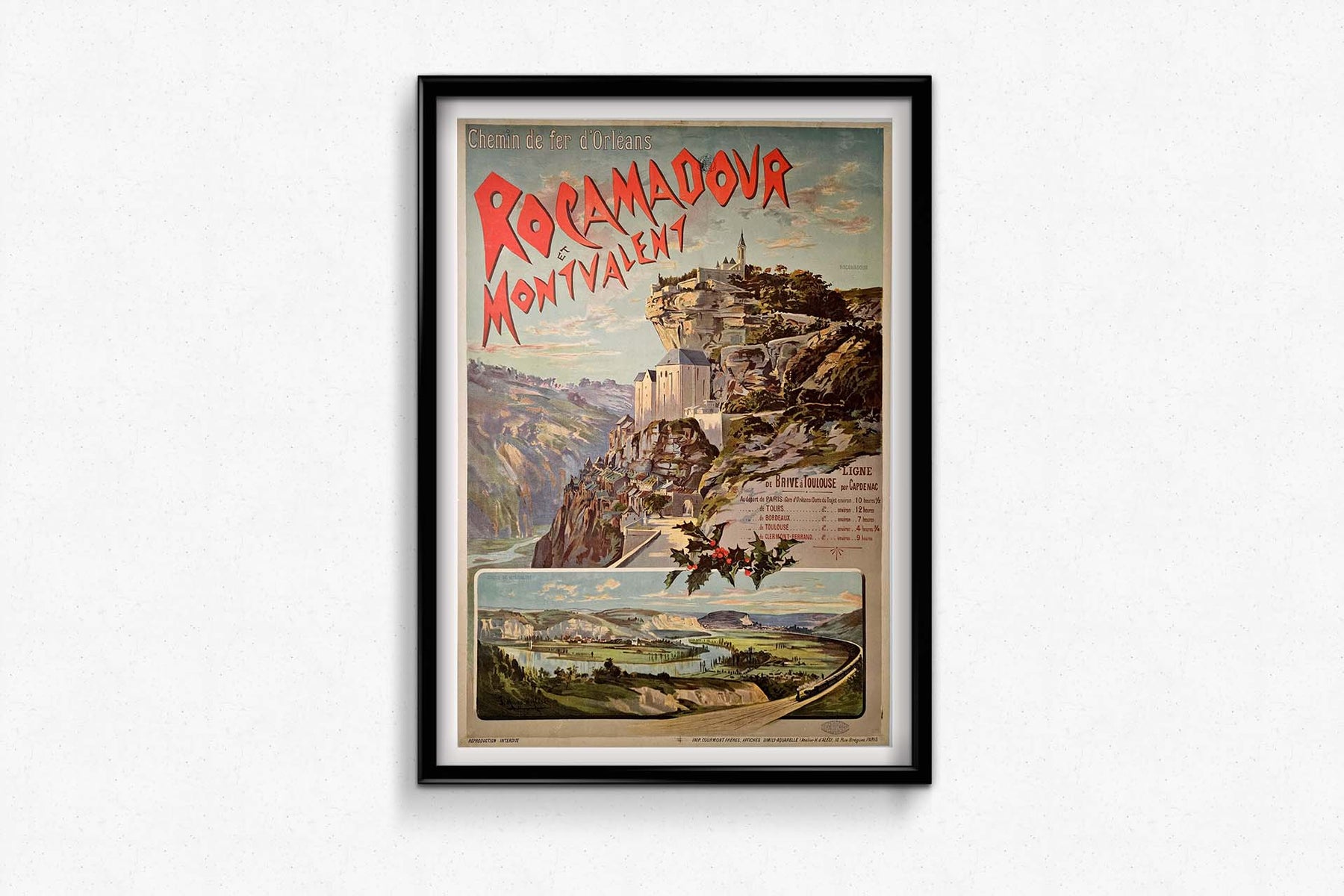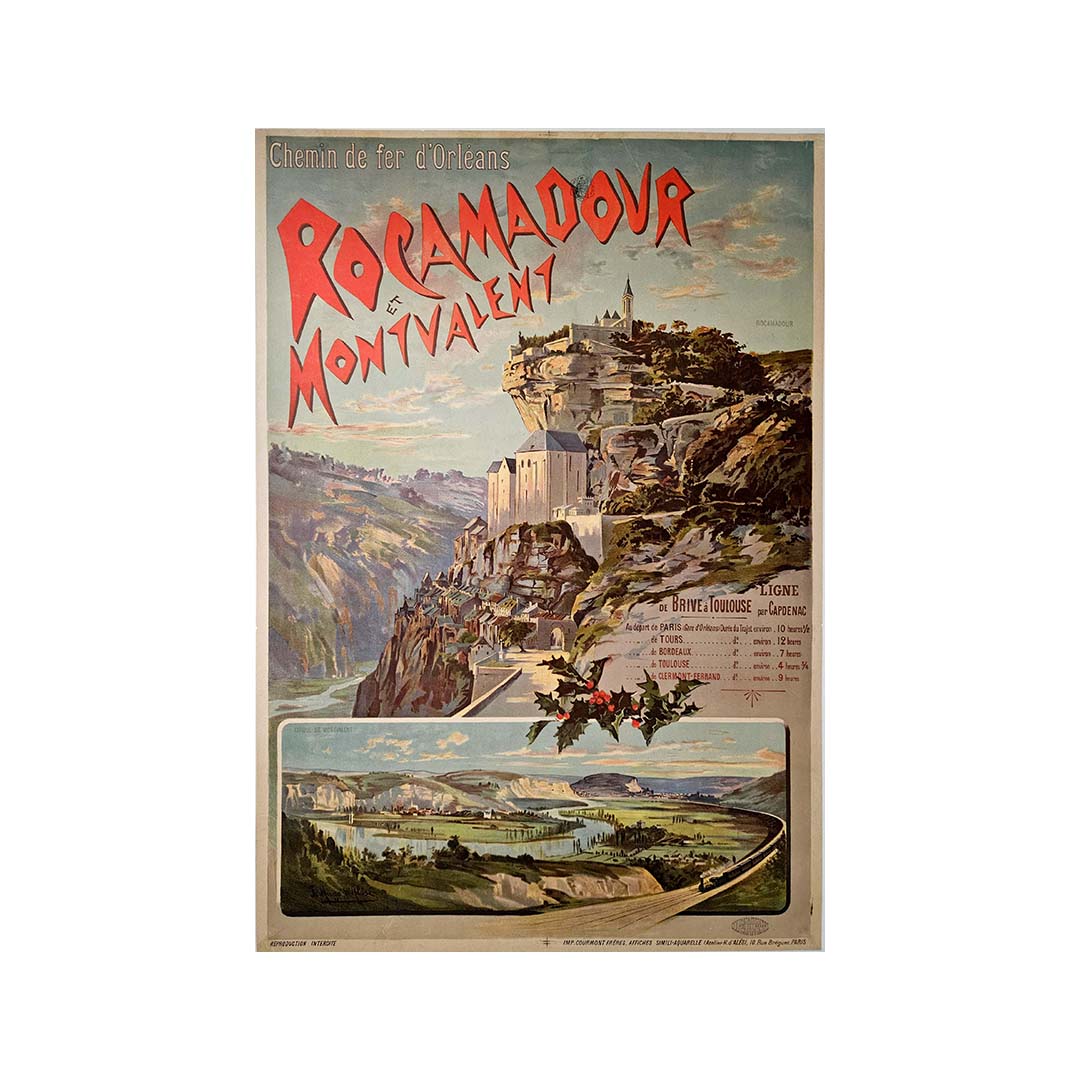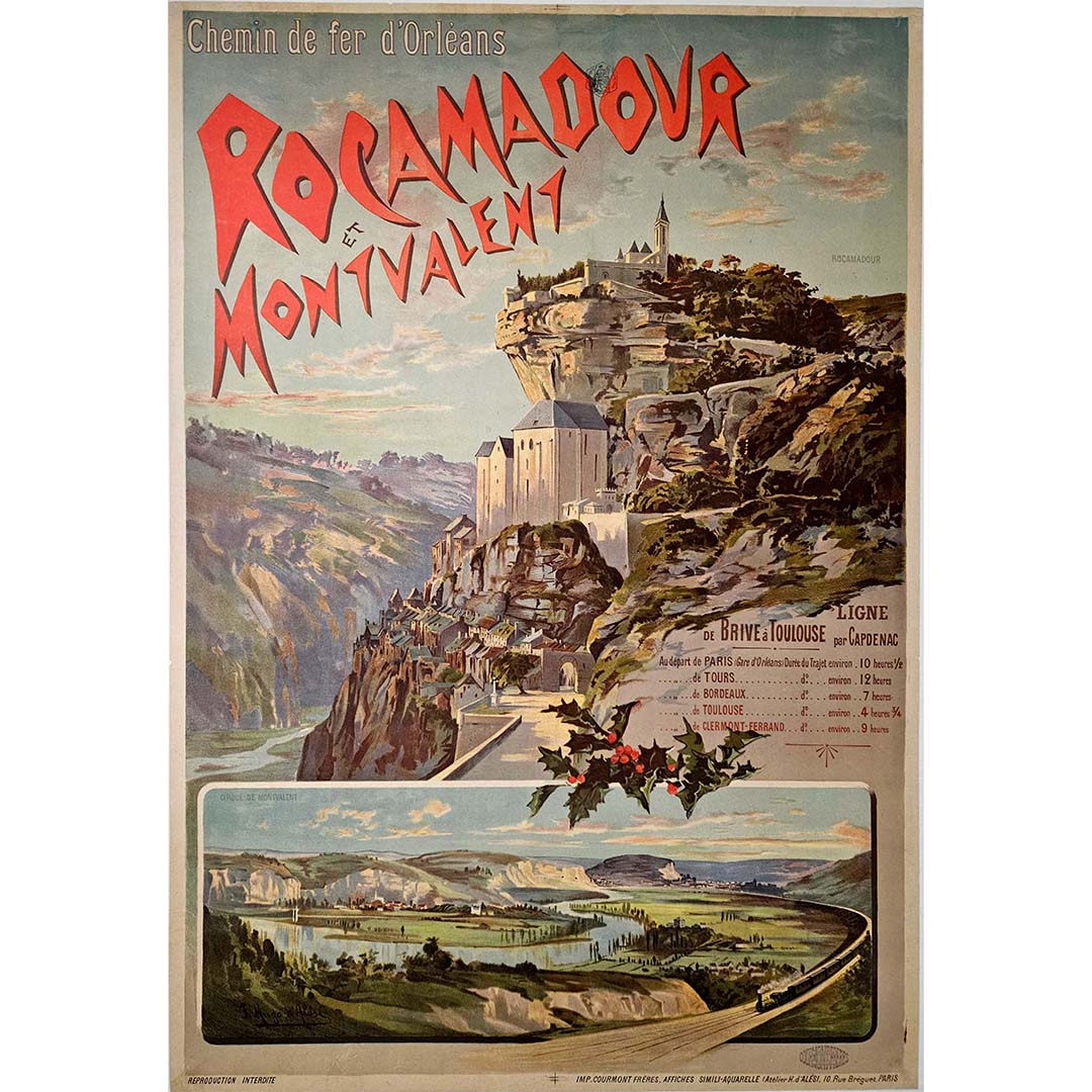 L'affiche de D'Alesi témoigne de sa maîtrise, présentant les splendeurs pittoresques de Rocamadour et de Montvalent sur fond de paysages luxuriants. La minutie des détails de l'architecture médiévale, les méandres de la rivière et les collines ondulantes évoquent une beauté intemporelle. La composition rayonne de sérénité et de charme, invitant le spectateur à un voyage au cœur de la France, guidé par le Chemin de fer d'Orléans.
