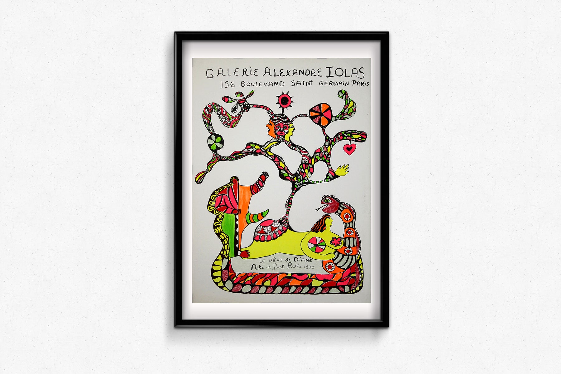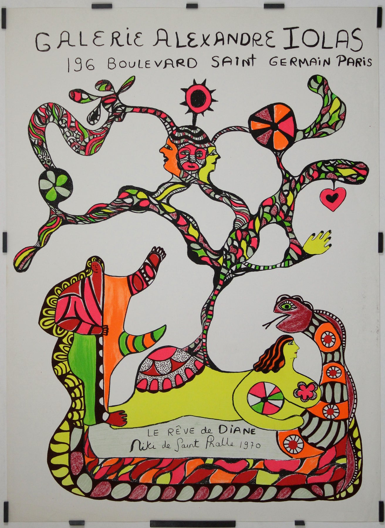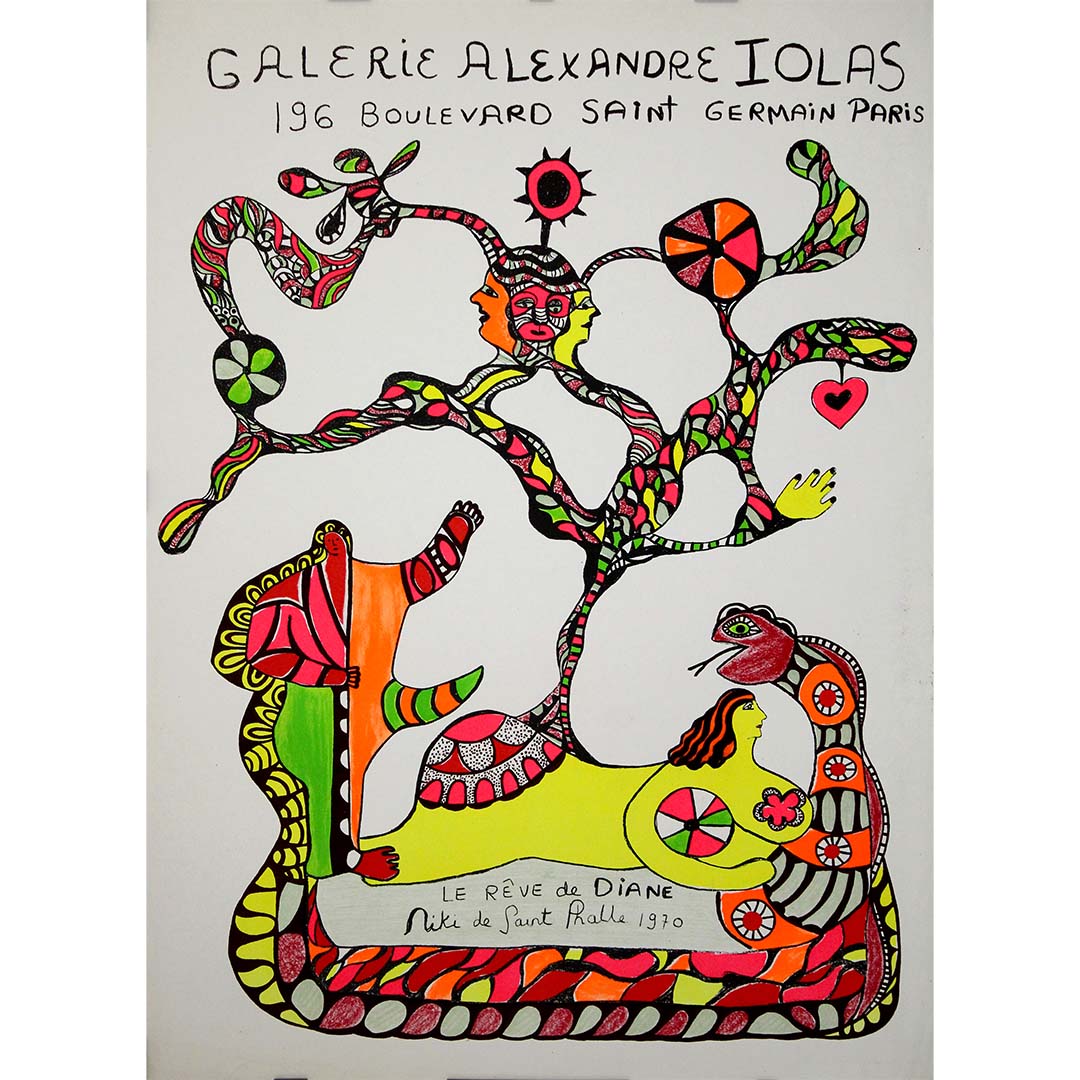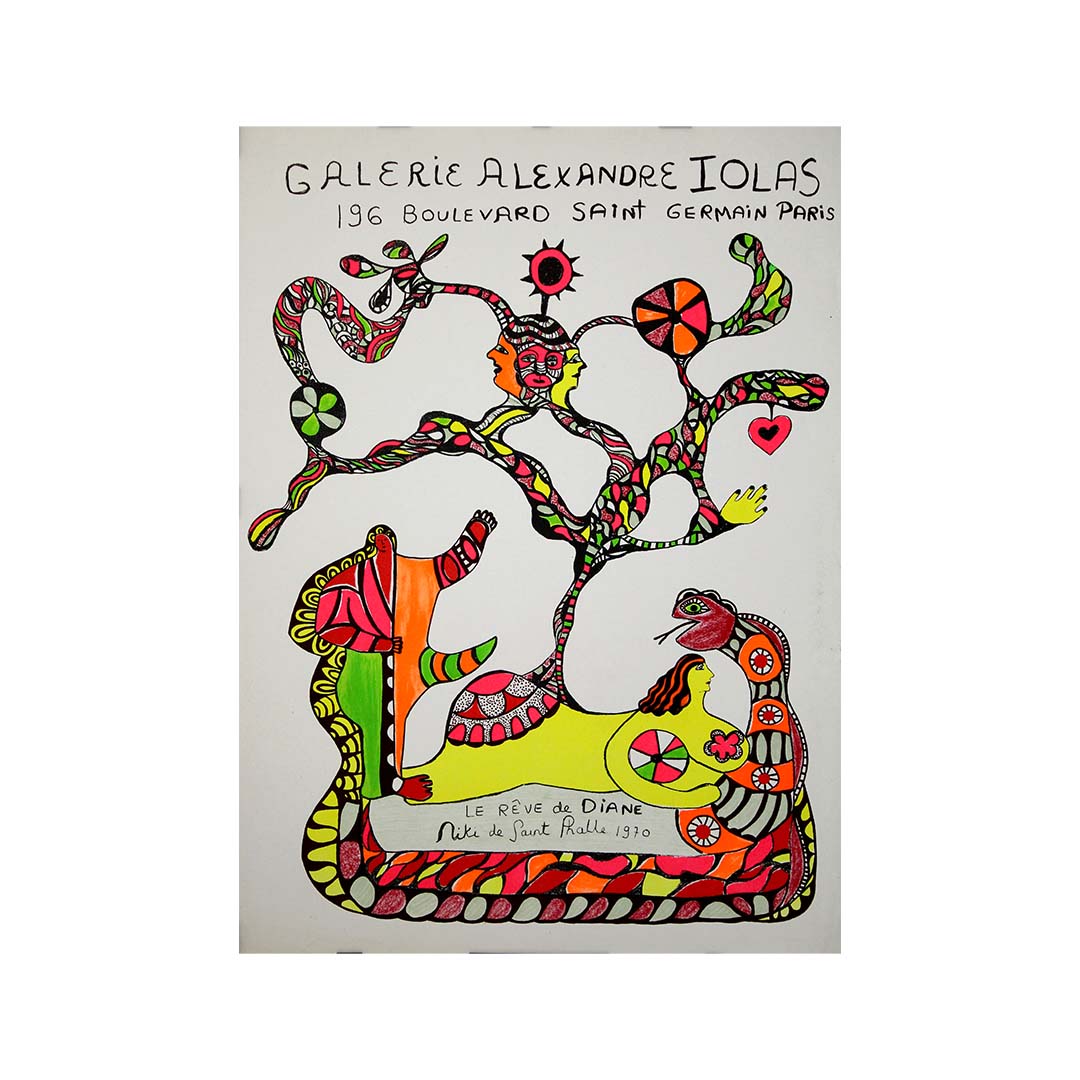 La galerie Alexandre Iolas, réputée pour représenter des artistes d'avant-garde, offrait un cadre idéal à cette exposition. Alexandre Iolas était reconnu pour son soutien à l'art expérimental, et son appui a permis à l'œuvre de Sainte Phalle de toucher un public plus large. « Le rêve de Diane » n'était pas seulement une exploration de la mythologie, mais aussi une invitation à repenser les récits entourant la féminité et le pouvoir, mêlant l'intime et l'universel dans une affirmation audacieuse sur la condition féminine.
