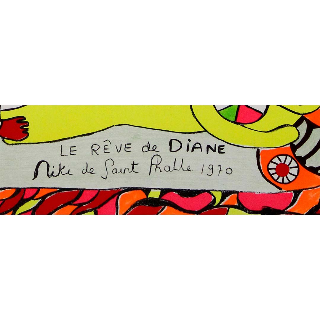 À l'époque, Sainte Marie-Phalle était célèbre pour ses « Nanas », de grandes figures féminines, joyeuses et rayonnantes, qui bousculaient les représentations traditionnelles de la femme et célébraient la liberté du corps féminin. Dans « Le rêve de Diane », elle prolongea cette vision, intégrant la force et l'indépendance de Diane à ses œuvres. La série présentait un ensemble de sculptures et de reliefs audacieux, chacun imprégné de son énergie et de sa fantaisie caractéristiques. Les pièces combinaient souvent couleurs vives, formes exagérées et matériaux inattendus, fusionnant le fantaisiste et le puissant d'une manière qui lui était propre.
