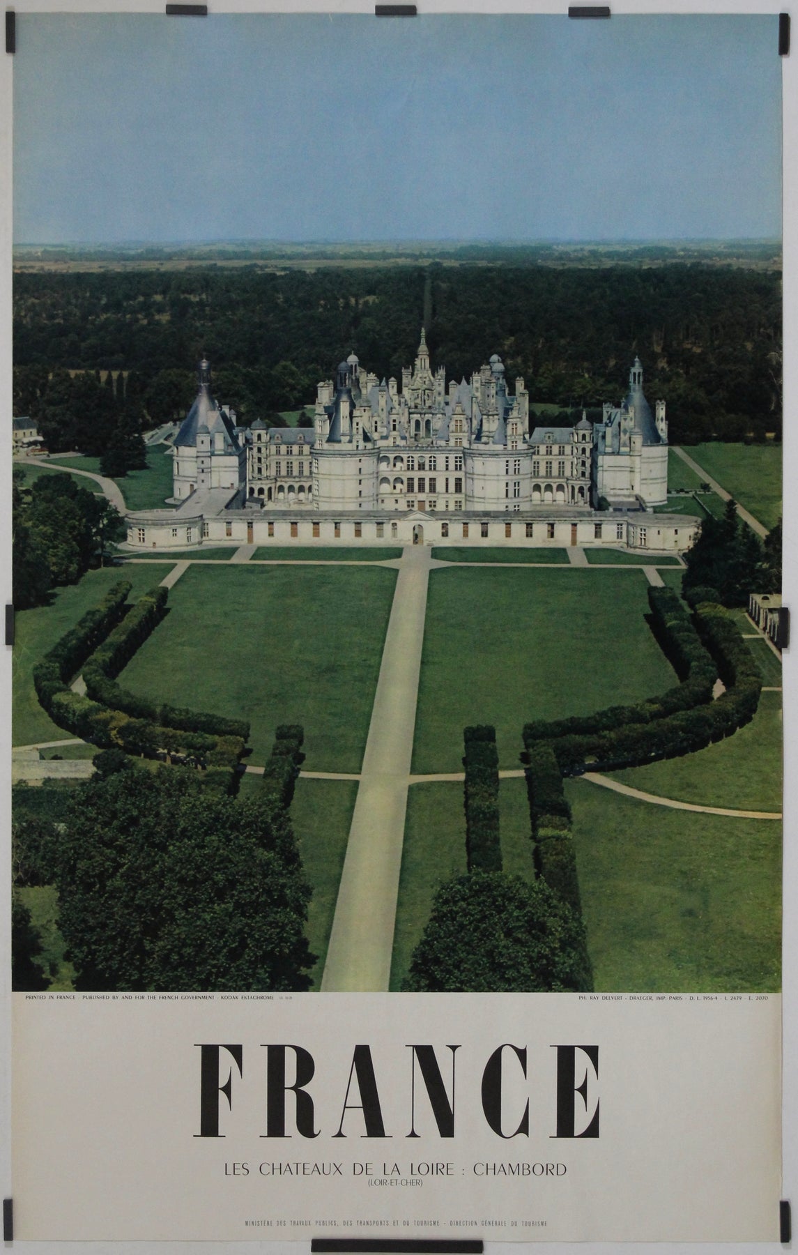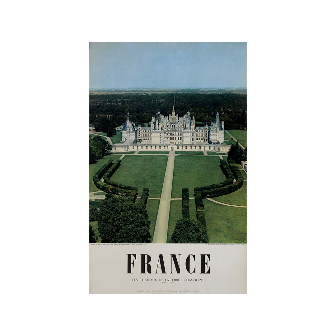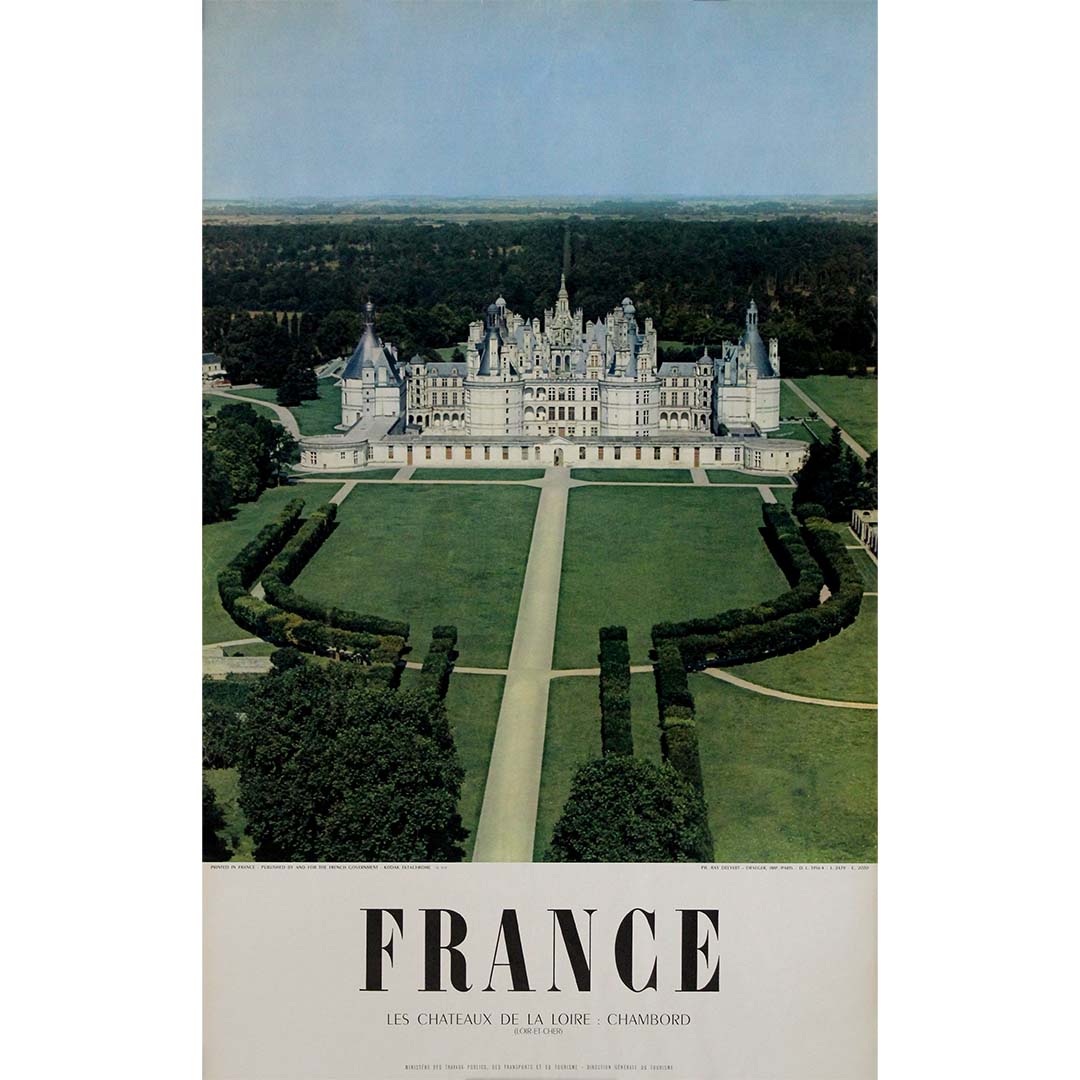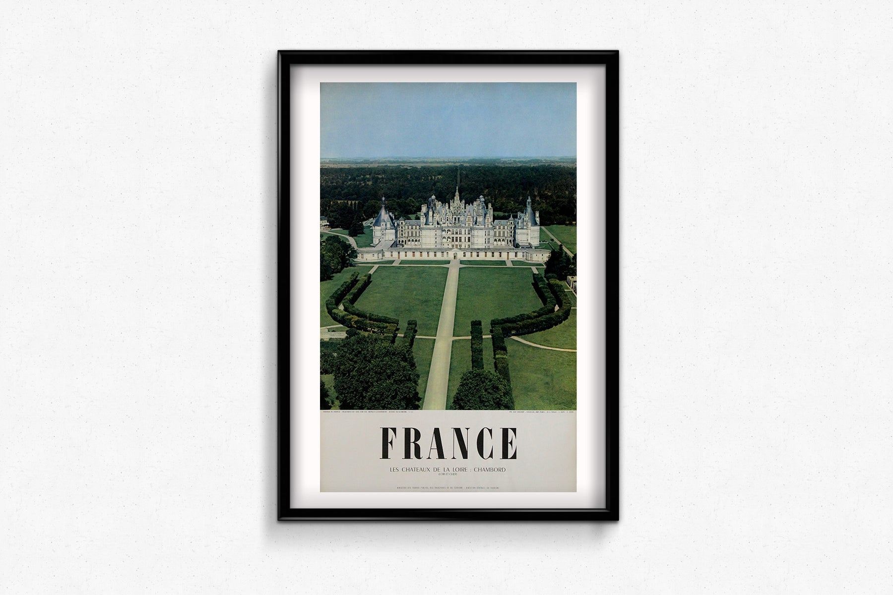 La vallée de la Loire, surnommée le « Jardin de la France », abrite de nombreux châteaux magnifiques, et Chambord demeure l'un des plus visités et admirés. Cette affiche met en lumière non seulement l'importance historique et architecturale du château, mais reflète également les efforts déployés par la France d'après-guerre pour relancer le tourisme et célébrer son patrimoine culturel.