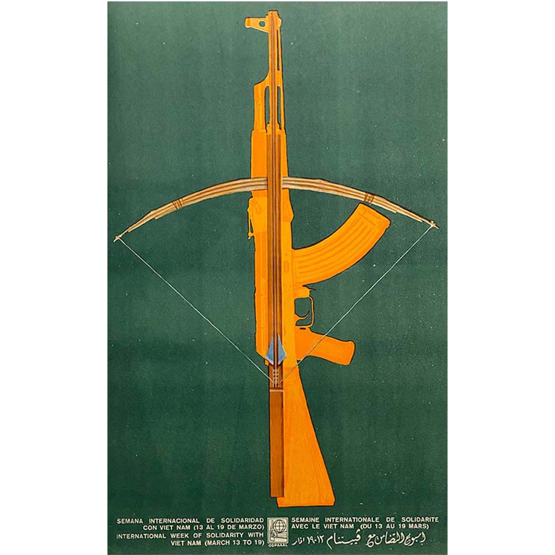 Cette affiche a été réalisée pour l'Organisation de solidarité des peuples d'Asie, d'Afrique et d'Amérique latine (OSPAAAL), créée par Fidel Castro. Cette organisation a vu le jour lors de la conférence tricontinentale organisée à La Havane en 1966 pour lutter contre l'impérialisme américain.
