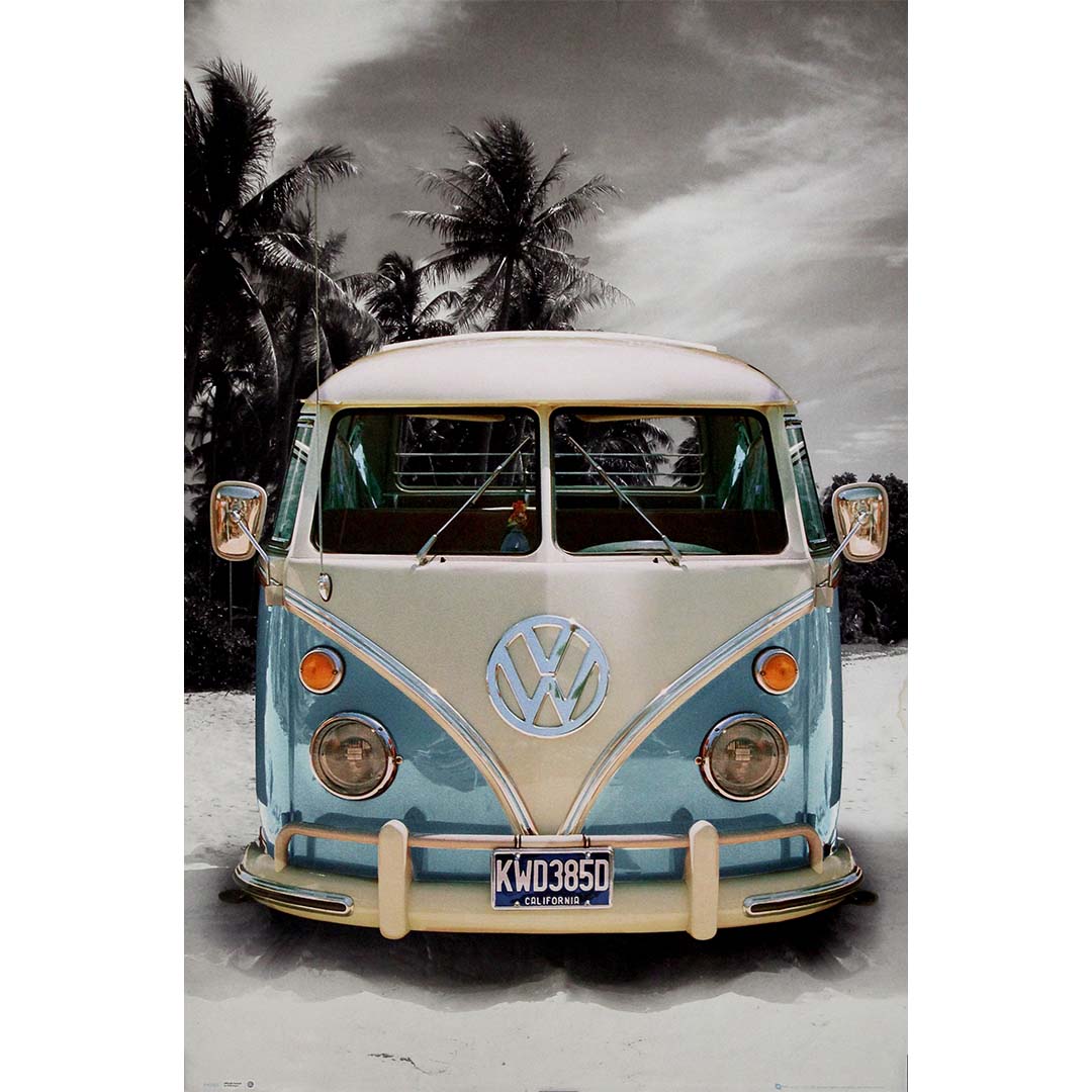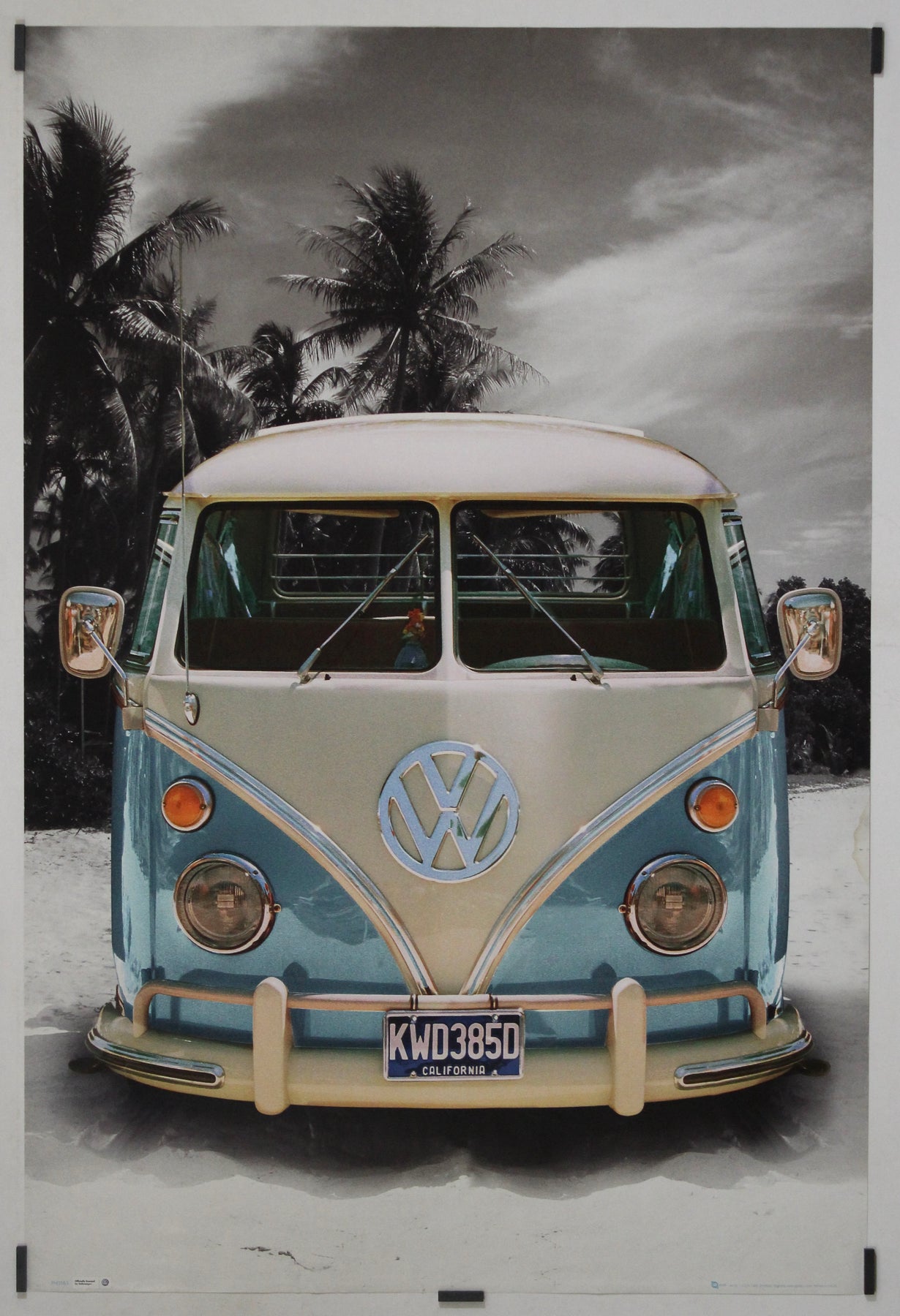 Cette affiche publicitaire originale des années 1970 rend hommage au légendaire Volkswagen Combi , un véhicule devenu synonyme de liberté, de voyage et du mouvement contre-culturel du milieu du XXe siècle. Qu'il sillonne les routes côtières ou qu'il soit stationné sur les parkings de festivals de musique, le VW Combi symbolisait un nouveau mode de vie : libre, convivial et mobile.