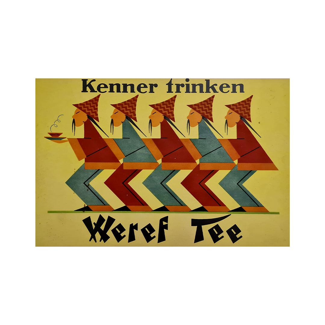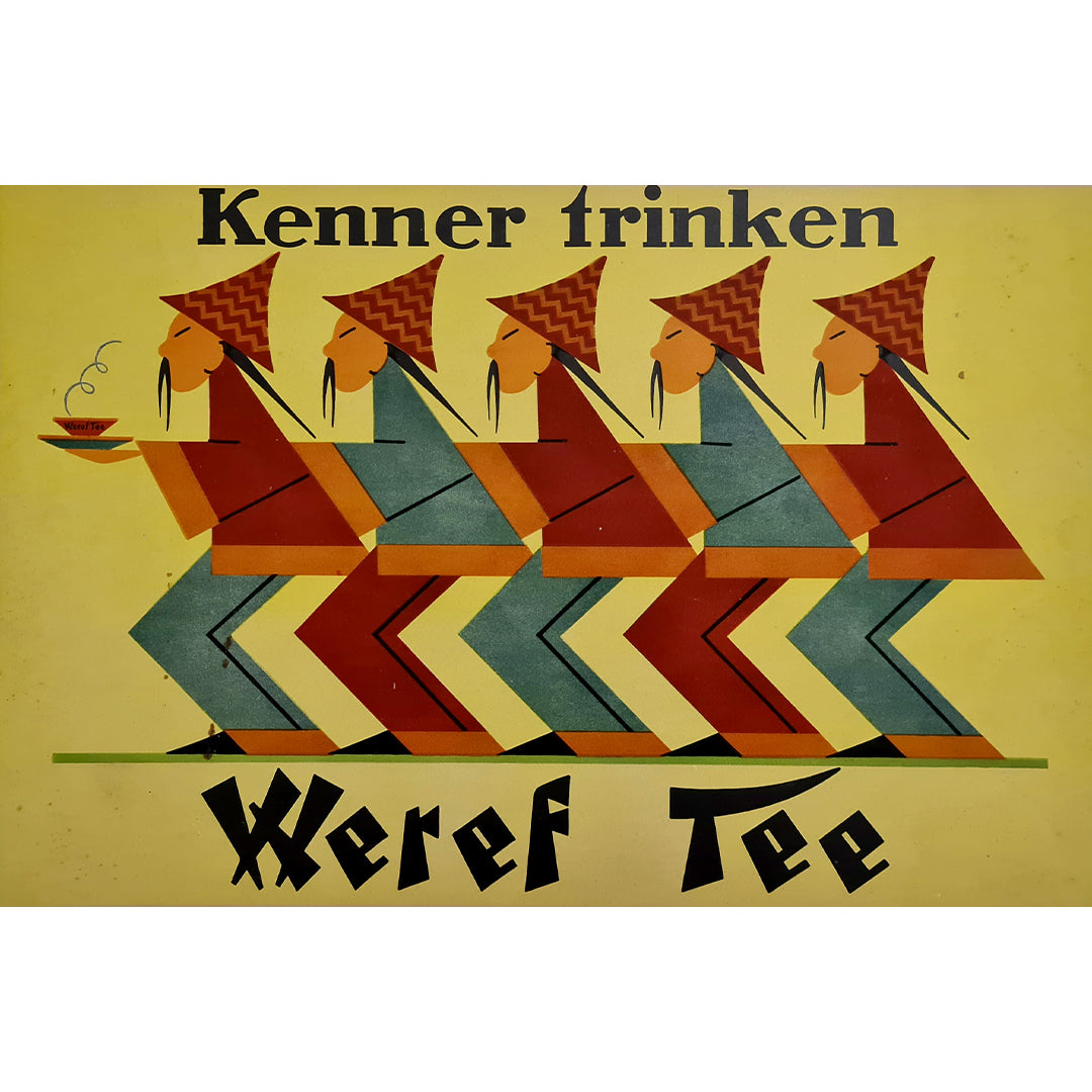 Belle affiche publicitaire pour le thé Weref. Réalisée vers 1930.