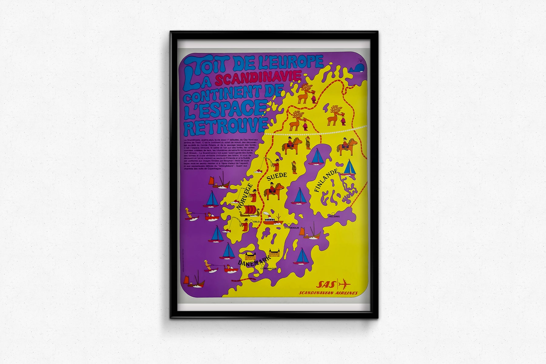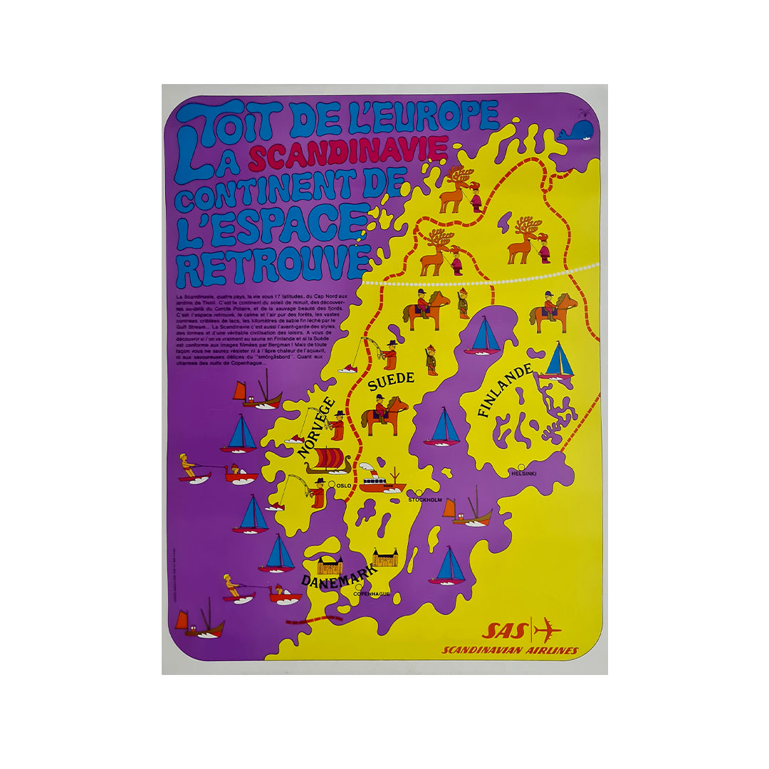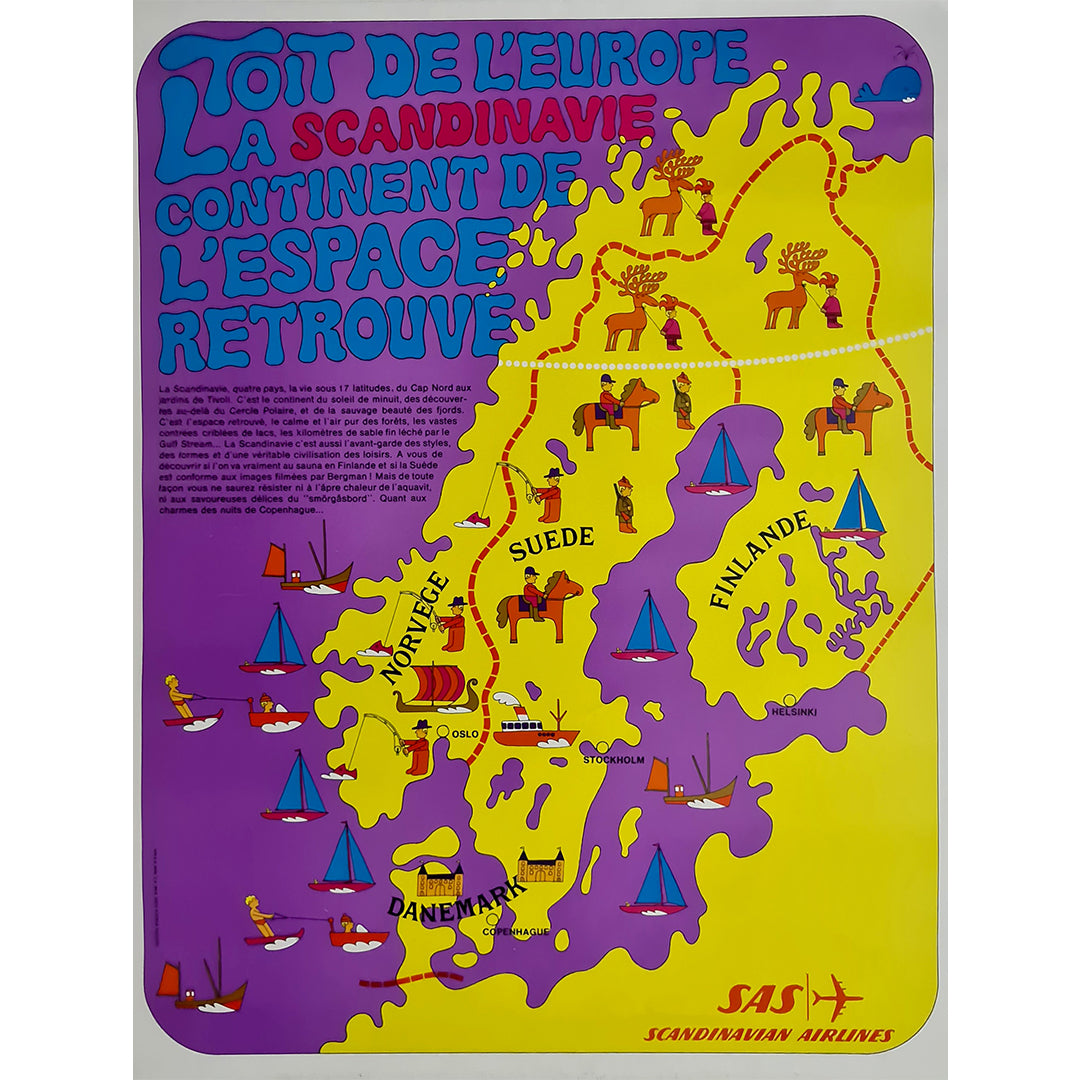 Une très belle affiche de style psychédélique. Elle a été réalisée dans les années 60 pour la compagnie aérienne SAS afin de promouvoir ses voyages en Scandinavie.