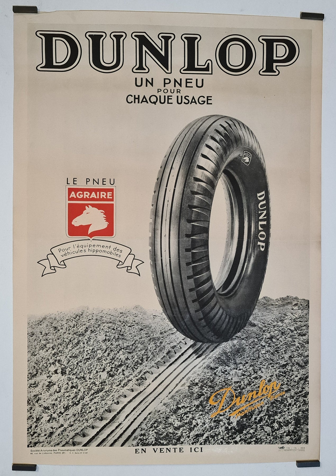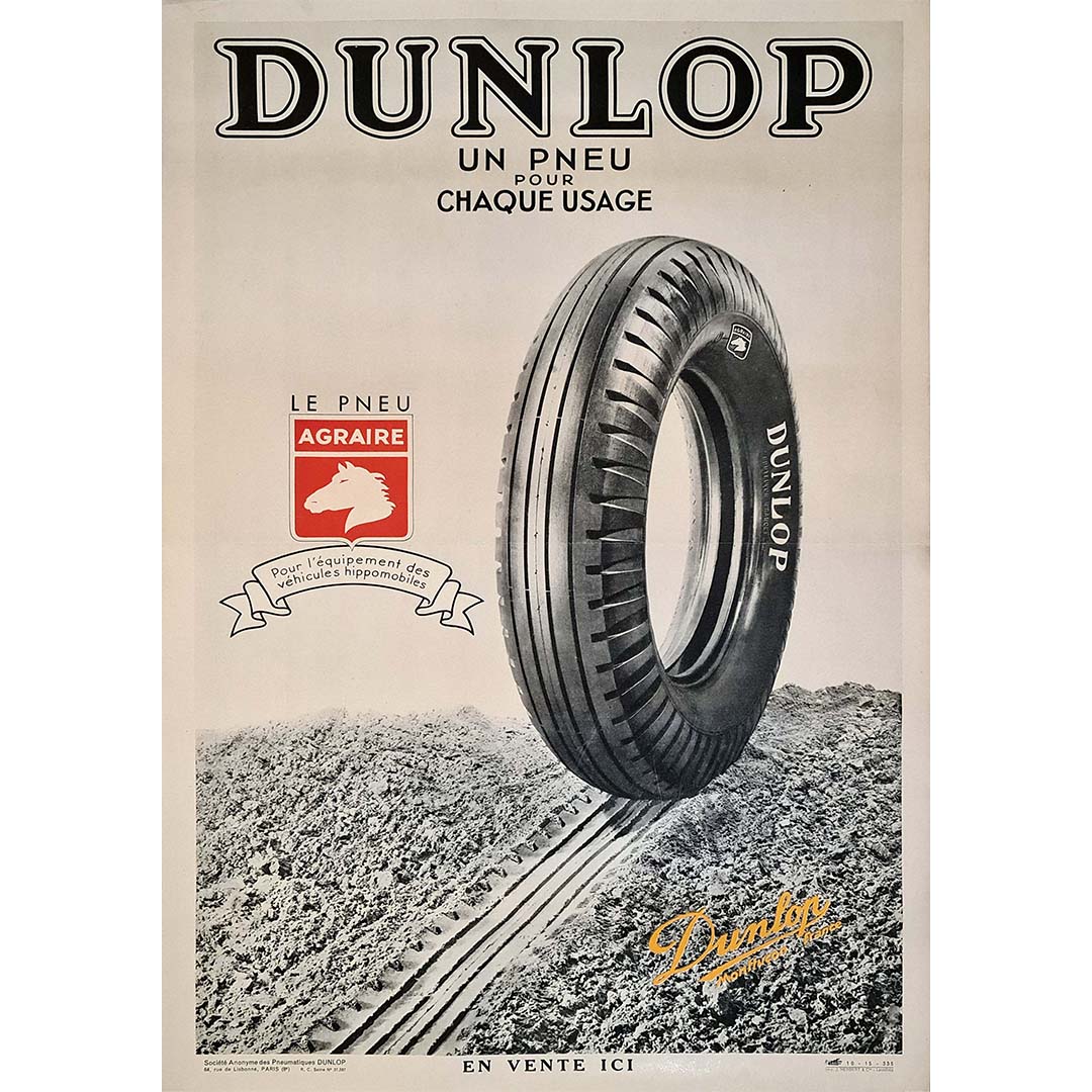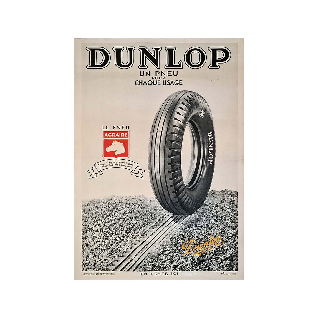 L'affiche publicitaire originale de 1935 pour Dunlop présente « Le pneu agricole », un pneu conçu pour améliorer les travaux agricoles et la productivité. Réalisée par J. Herbert & Cie à Levallois, cette affiche souligne l'engagement de Dunlop envers l'innovation et l'excellence dans la fabrication de pneumatiques.