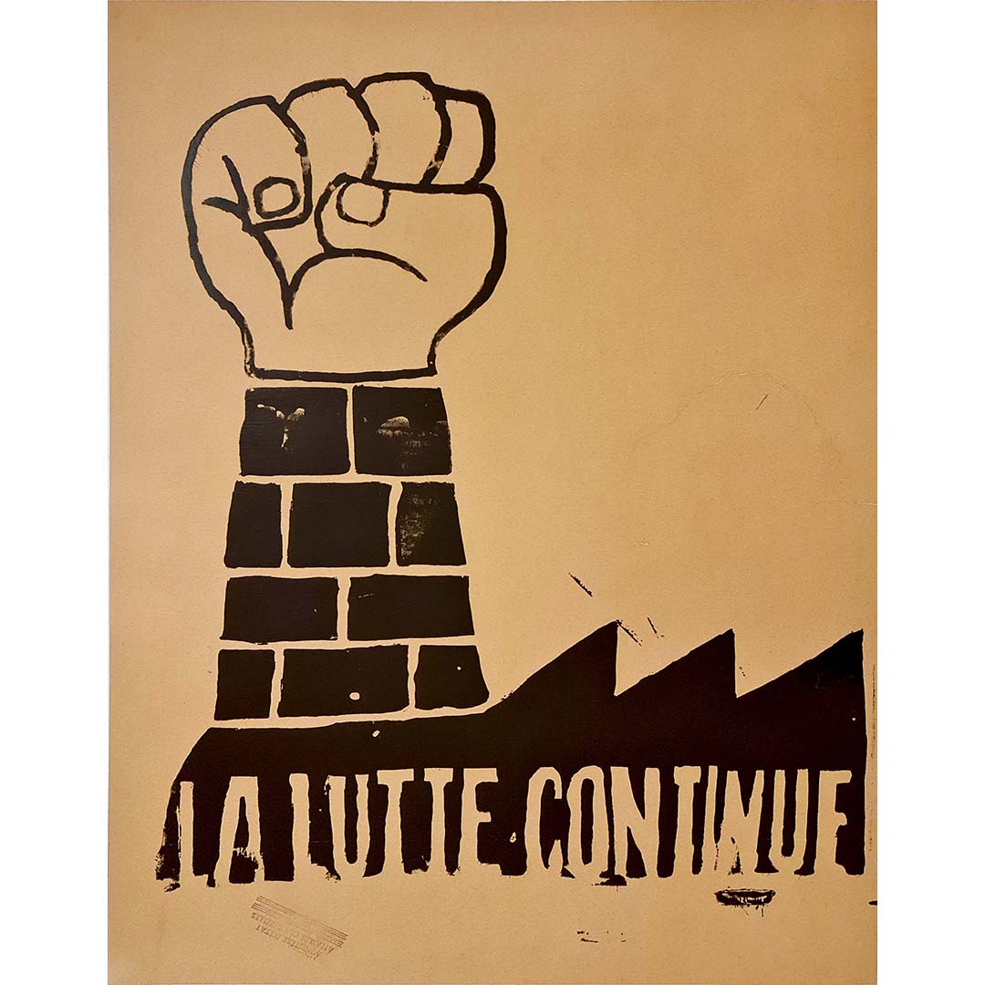 Magnifique affiche originale de mai 68, avec le slogan « La Lutte Continue ».