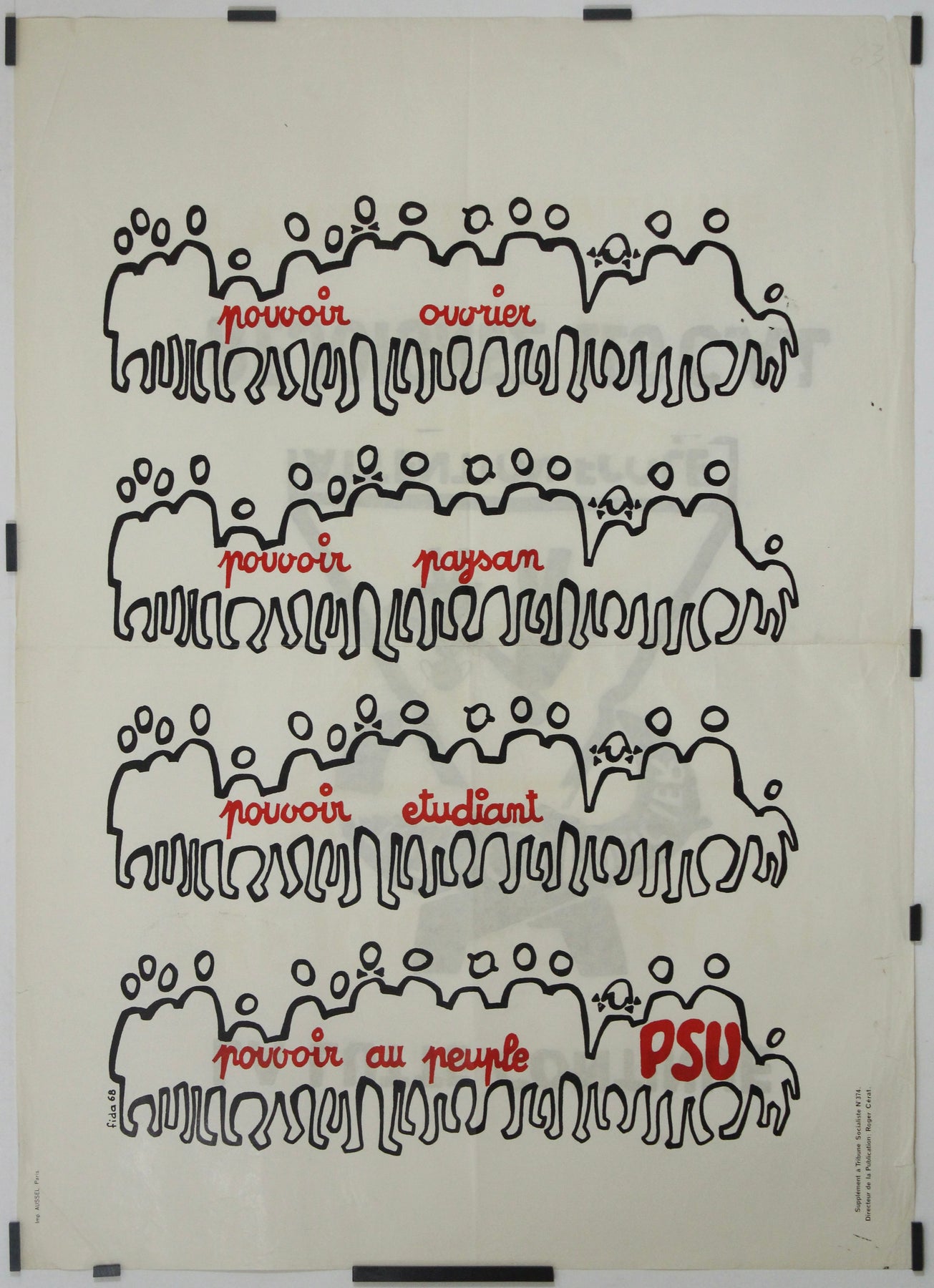 Au dos : Pouvoir ouvrier, pouvoir paysan... PSU signé Fida
