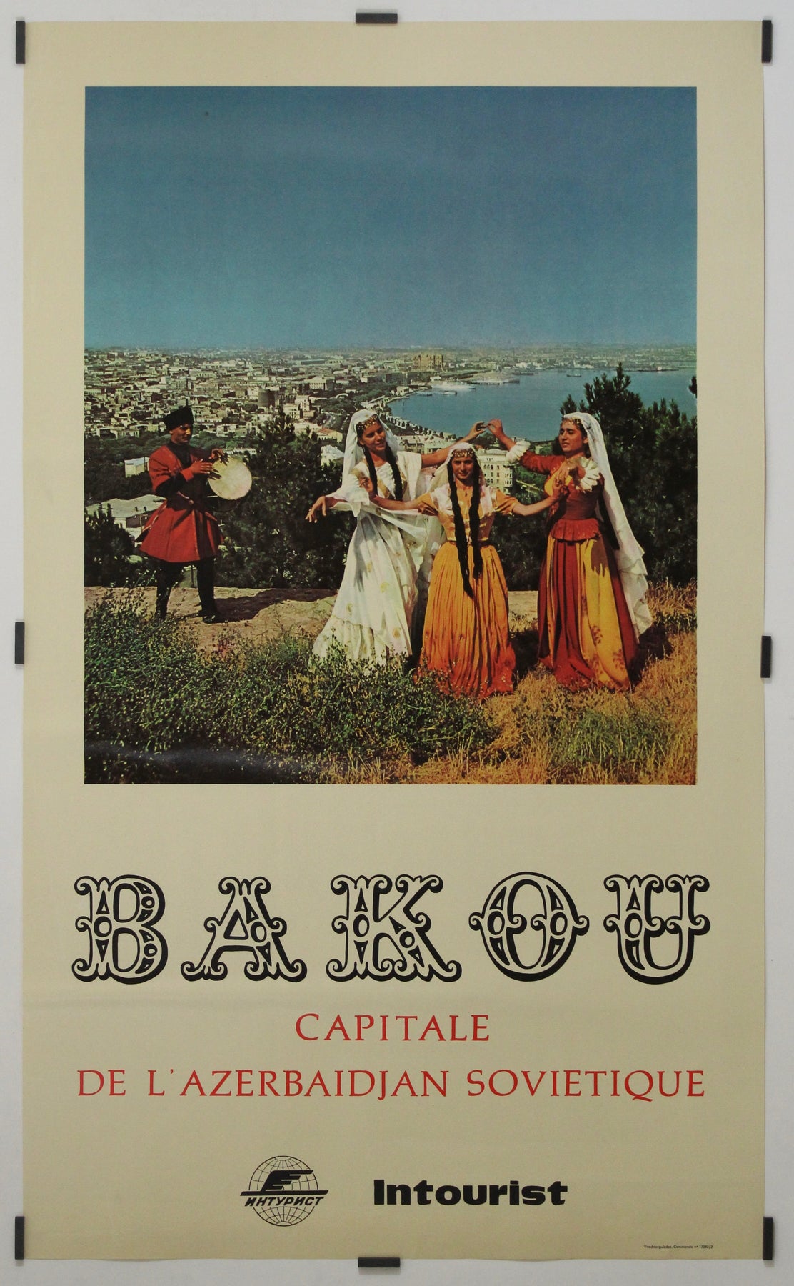 Célébrant la culture locale, la splendeur des paysages et l'unité multiculturelle soviétique, cette affiche est un témoignage historique exceptionnel d'une époque où l'URSS cherchait à présenter ses diverses républiques au monde entier. Une pièce idéale pour les collectionneurs d'objets liés au voyage soviétiques, au patrimoine azerbaïdjanais ou au design touristique du milieu du XXe siècle.