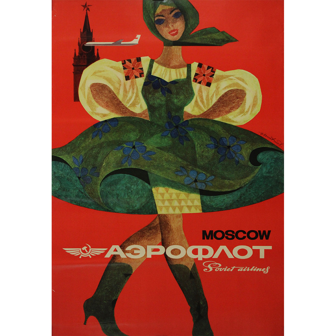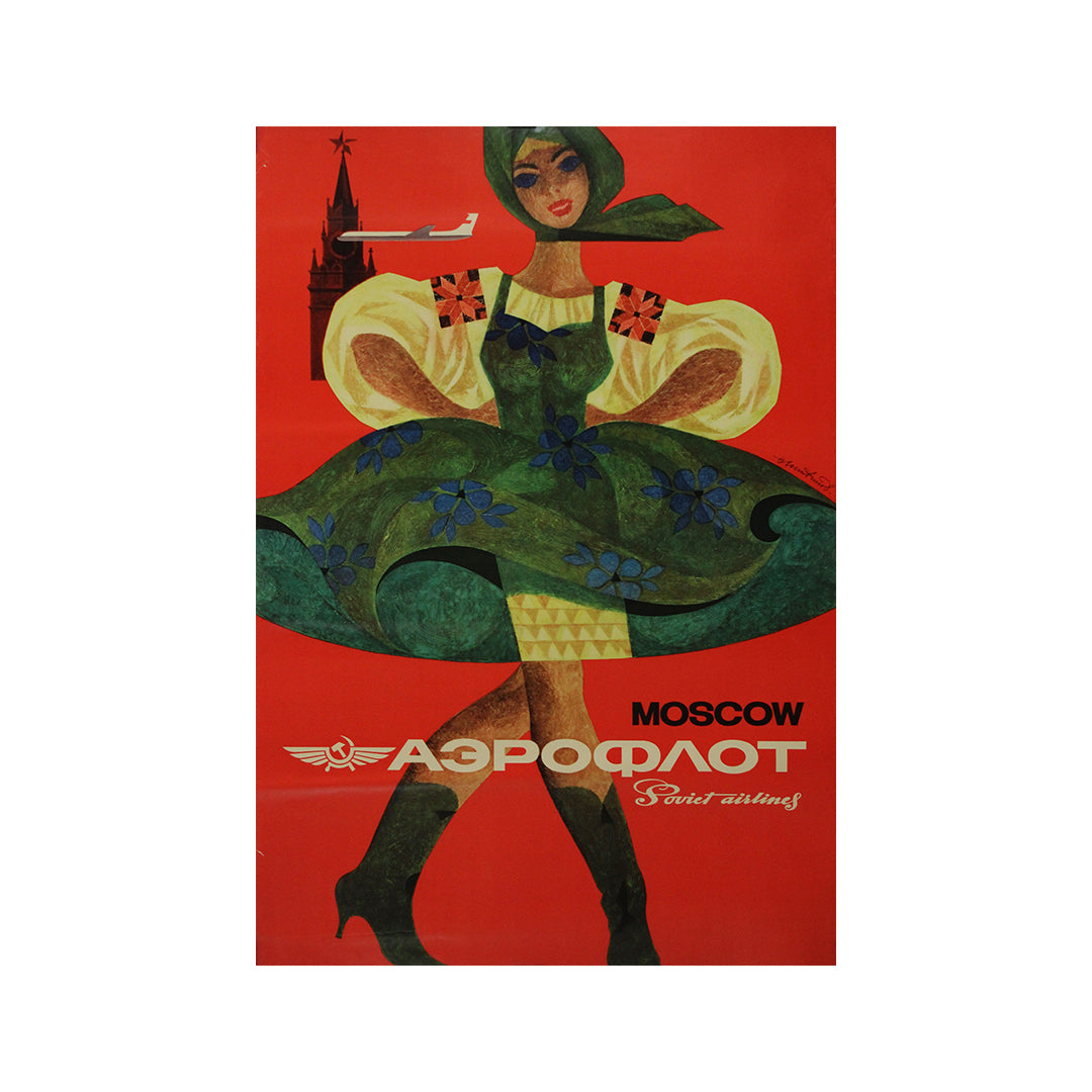 Cette affiche est un témoignage visuel saisissant du soft power soviétique, visant à charmer et à séduire par un mélange de culture nationale et d'aviation moderne. Aujourd'hui, elle constitue une pièce nostalgique et recherchée de l'histoire graphique, célébrant une époque où les voyages organisés par l'État étaient à la fois l'expression d'une idéologie et la concrétisation d'un rêve de connectivité.