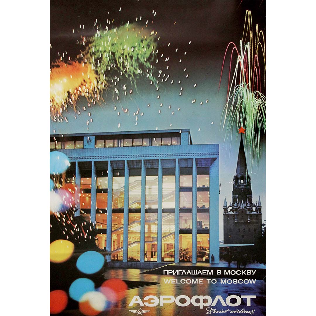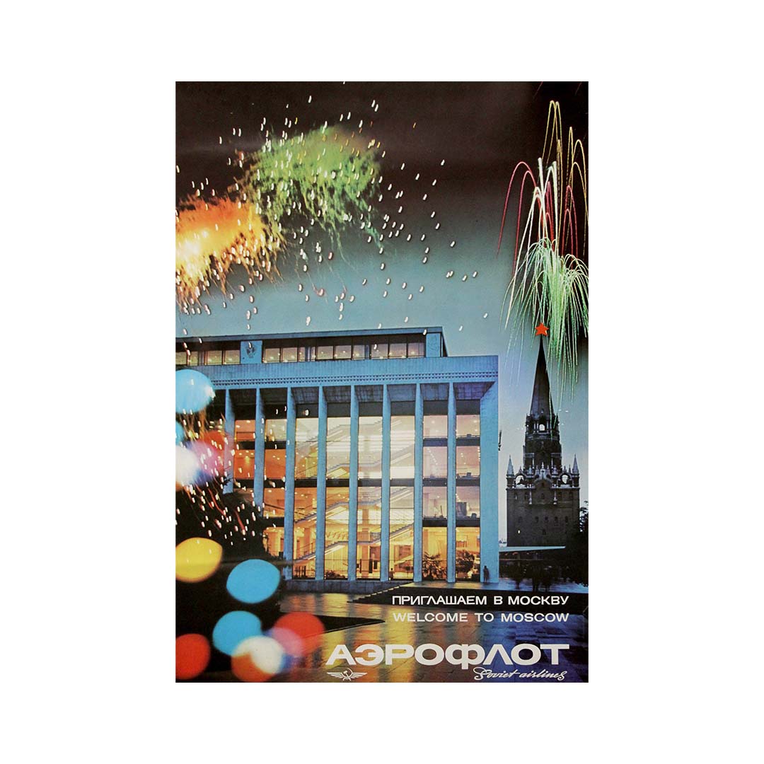 Voyagez avec Aeroflot vers Moscou et découvrez la confiance et le confort qui ont fait de notre compagnie un symbole de la réussite soviétique. Forte d'une vaste flotte d'avions modernes, de pilotes expérimentés et d'une desserte de toutes les républiques, Aeroflot transporte plus de passagers que toute autre compagnie aérienne au monde, reliant les régions les plus reculées de l'Union à sa capitale.