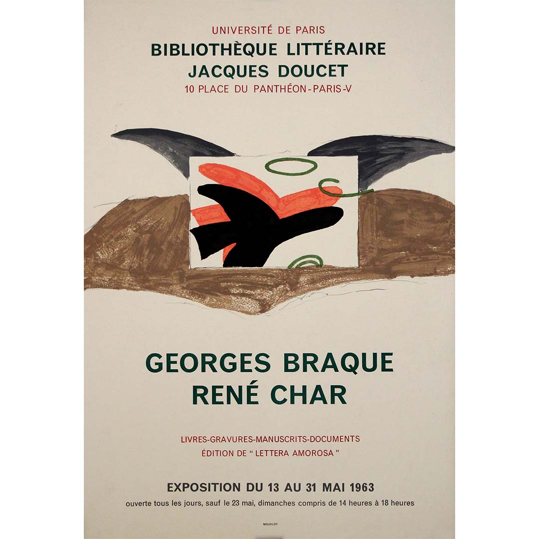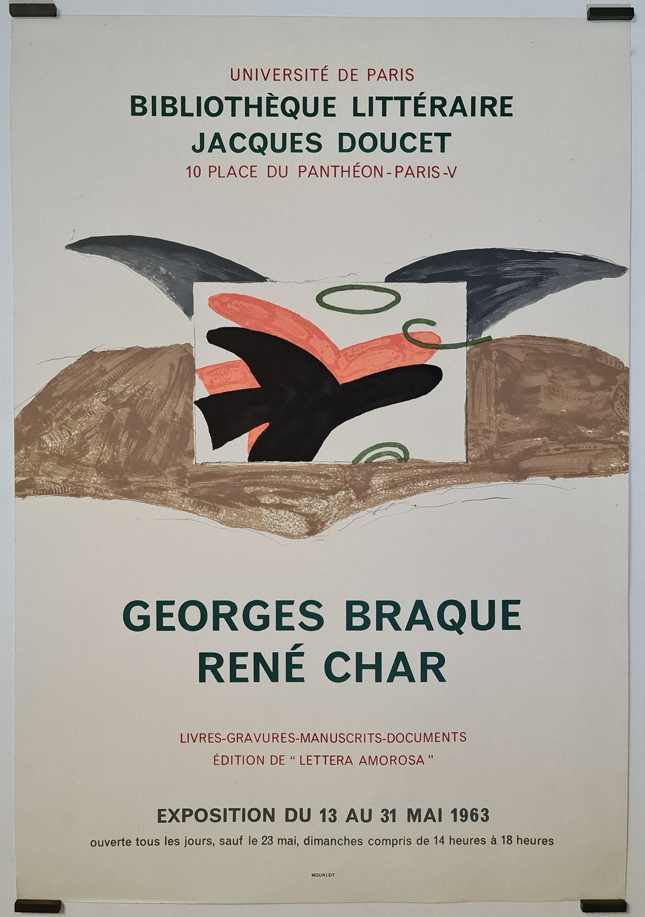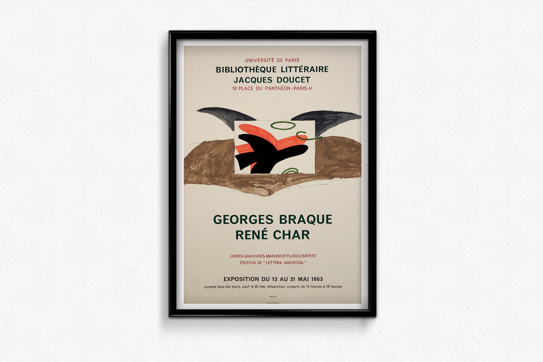 L'exposition « Livres, gravures, manuscrits et documents » demeure un chapitre important dans l'histoire de Georges Braque et de René Char, marquant un moment où les univers de la peinture, de la littérature et de la gravure se sont rencontrés de manière profonde et stimulante. L'affiche de l'exposition, aujourd'hui objet de collection très recherché, témoigne de ce moment fondateur de l'art et de la littérature modernes. Elle continue d'inspirer les amateurs d'art, les collectionneurs et les chercheurs, reflétant l'influence durable de l'approche novatrice de Braque et Char dans la fusion des mots et des images.