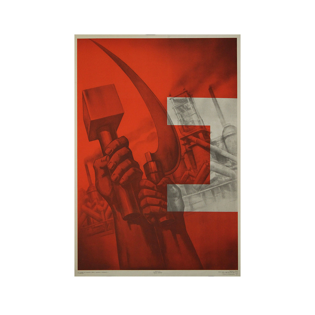Créée au plus fort de la guerre froide sur le plan idéologique, cette affiche faisait partie d'une campagne visuelle visant à projeter une solidarité socialiste internationale – un appel aux travailleurs de tous horizons à se lever, à construire et à croire.