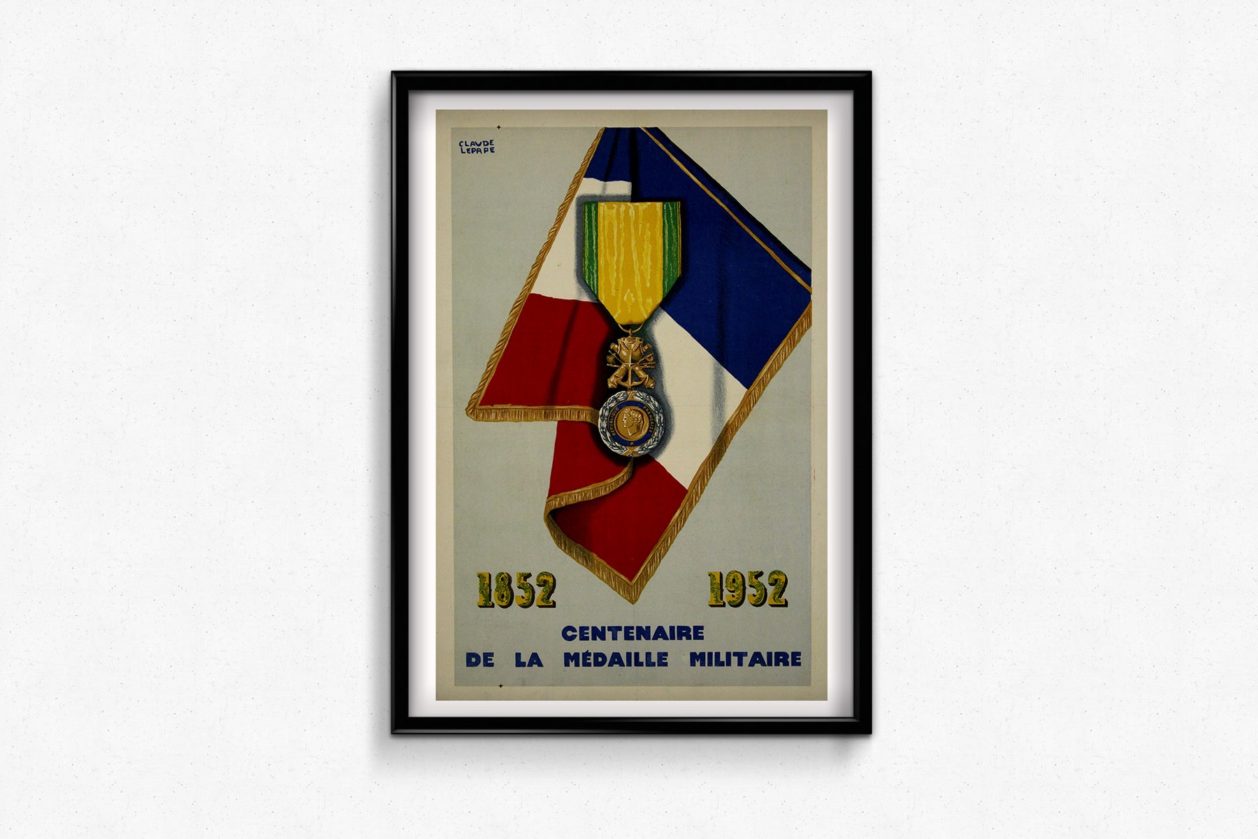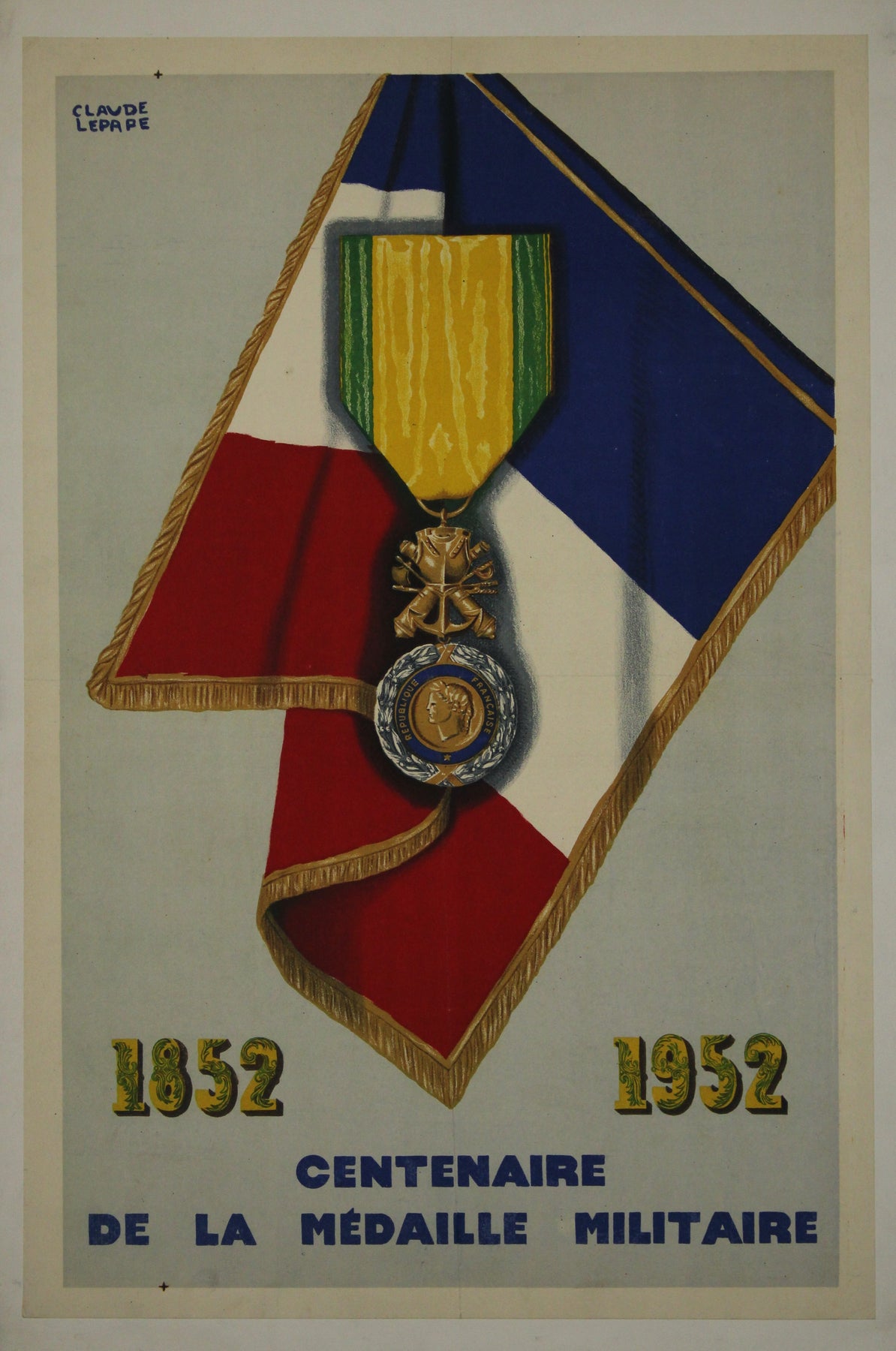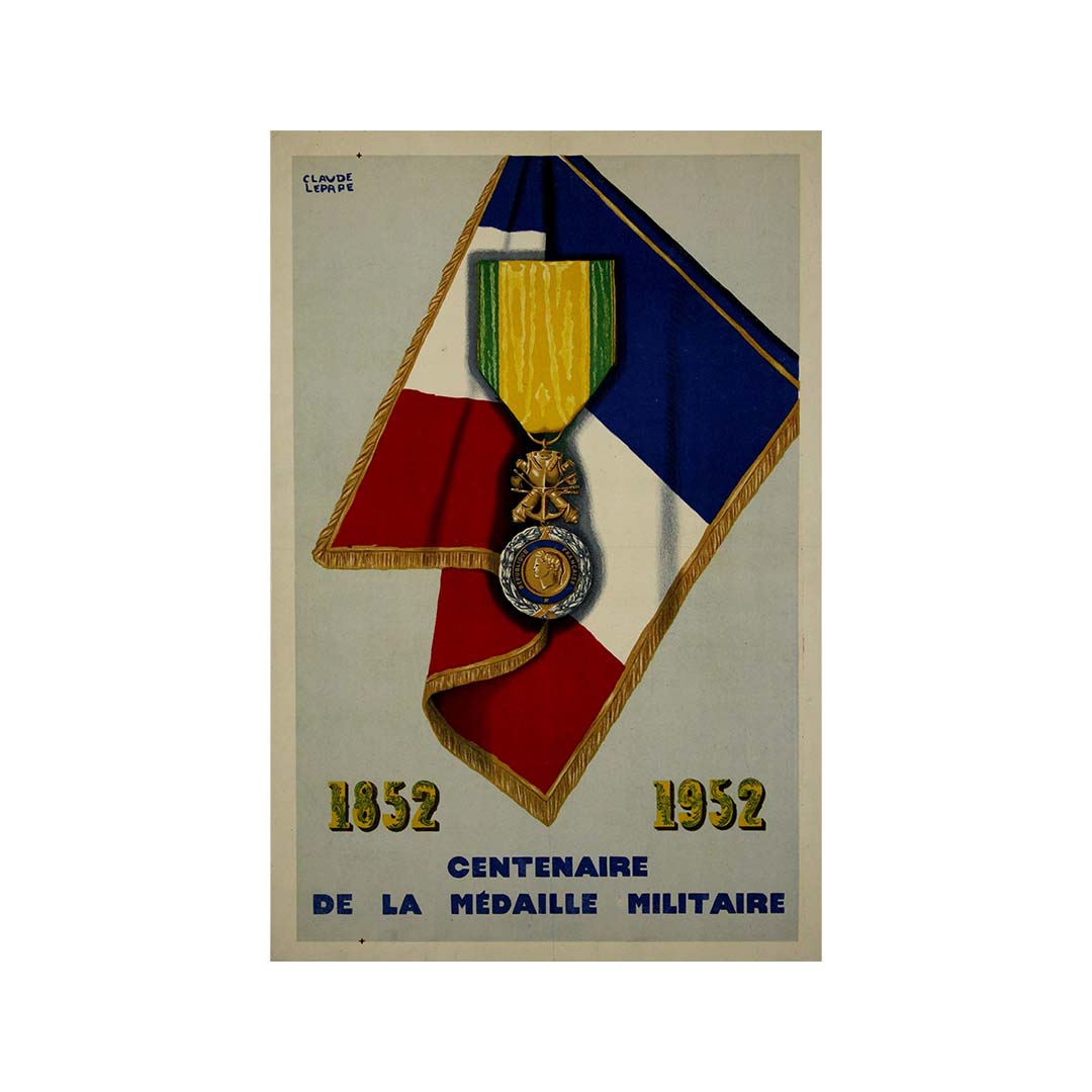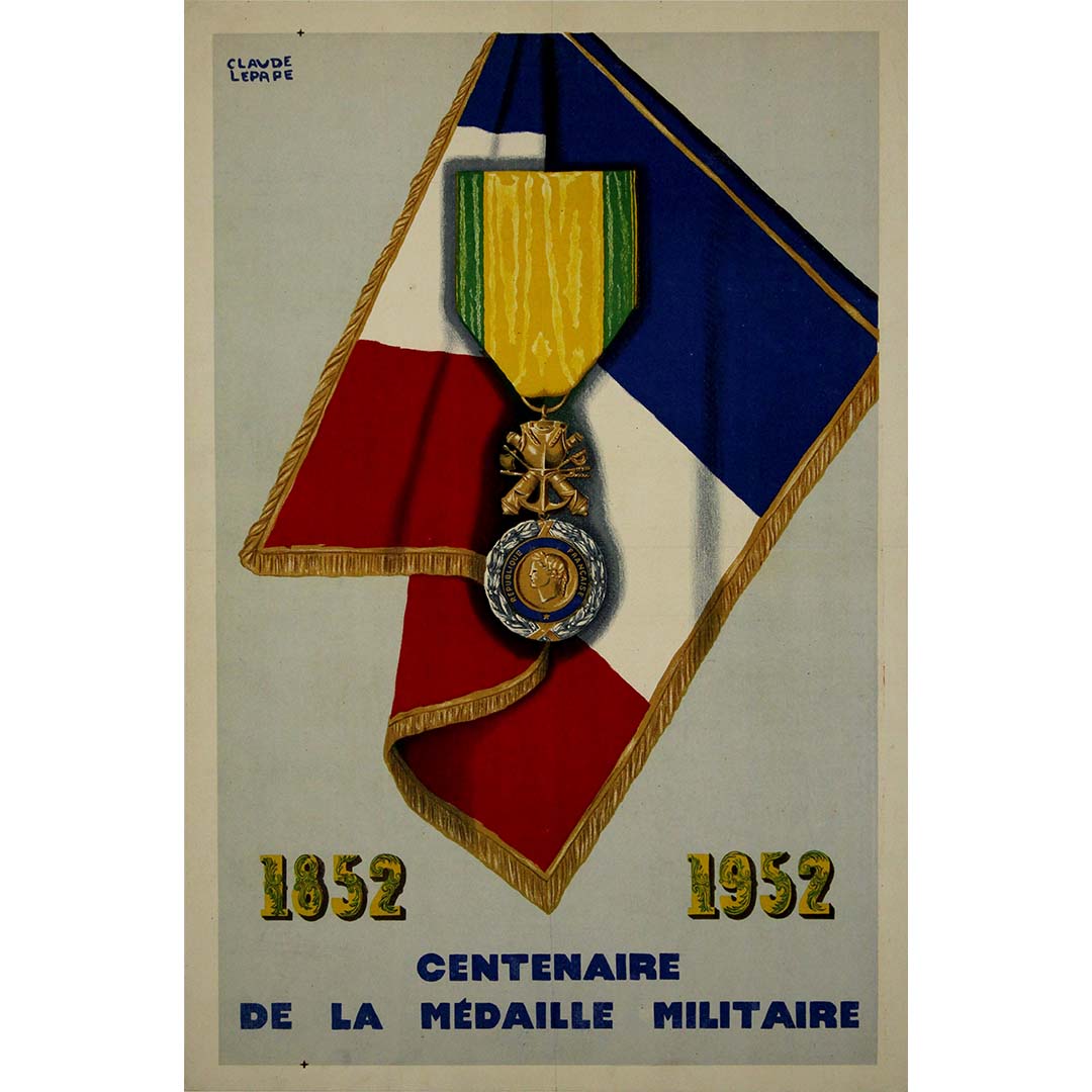 L'affiche de Claude Lepape fut créée pour commémorer cet événement marquant et reflète la grandeur et la dignité de la Médaille Militaire. Artiste reconnu pour sa maîtrise de l'affiche française, Lepape se distinguait souvent par une utilisation sophistiquée de la couleur, de la forme et du symbolisme. Son affiche du centenaire intégrait probablement des motifs évoquant les traditions militaires, la fierté nationale et l'importance historique, ce qui en faisait une puissante représentation visuelle de l'événement.