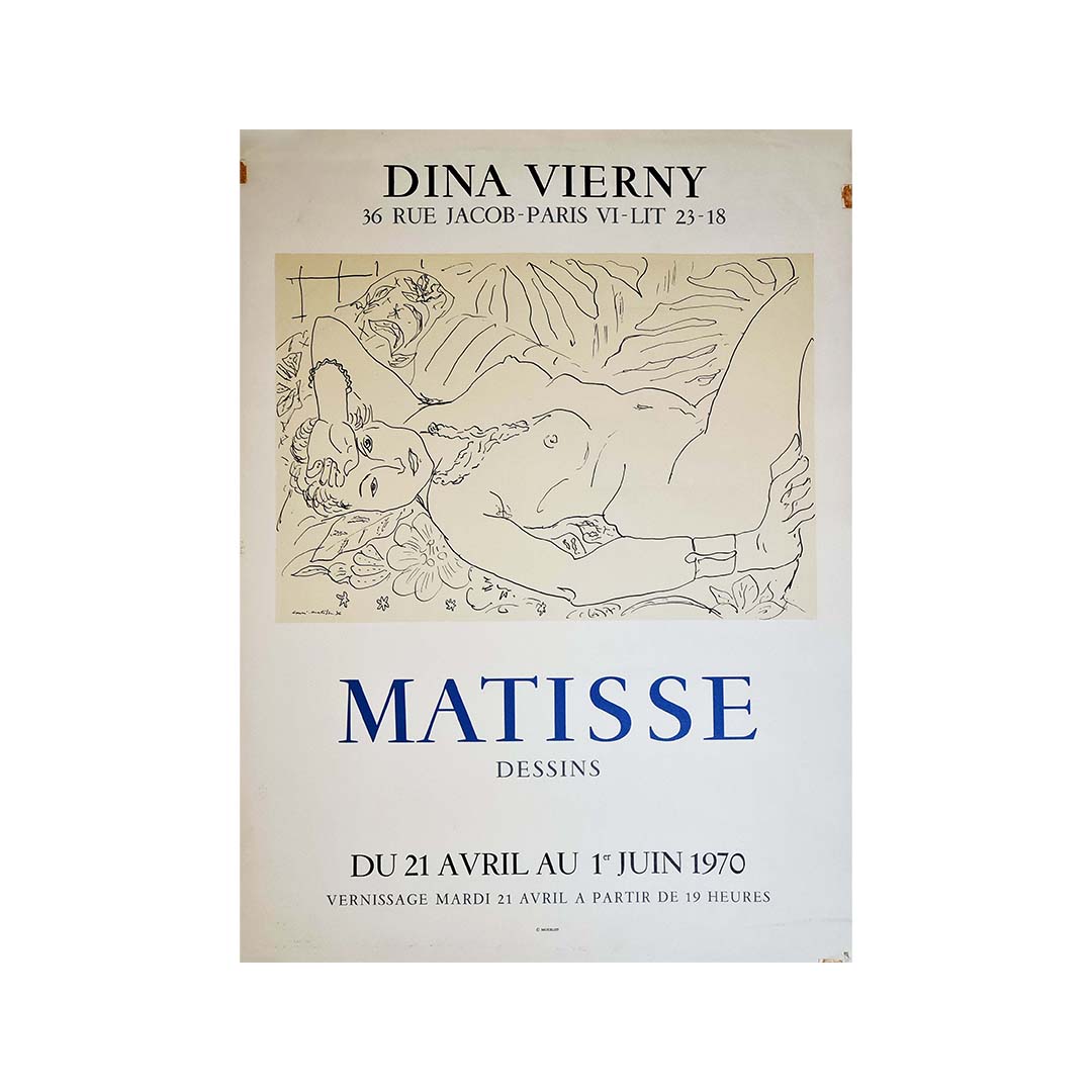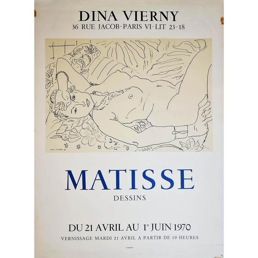 Belle affiche de l'exposition des dessins d'Henri Matisse à la galerie Dina Vierny en 1970.