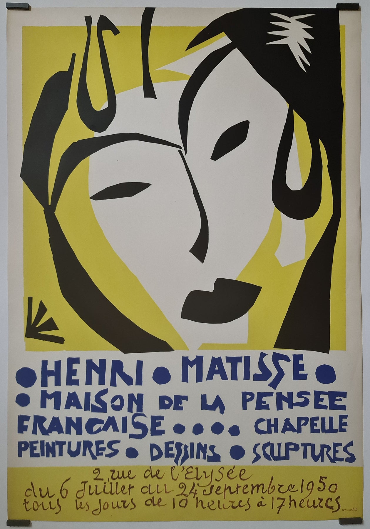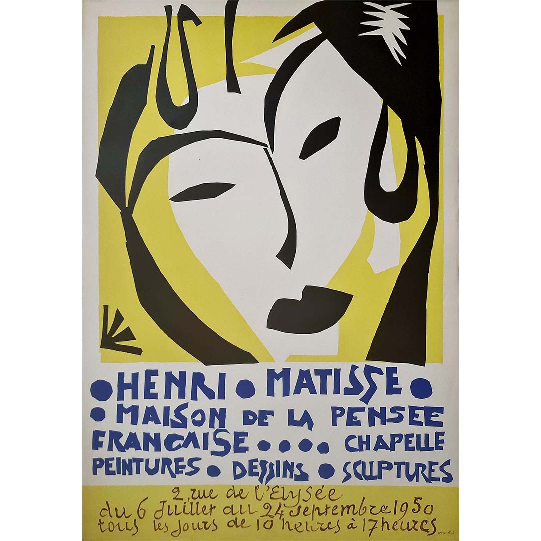 Cette magnifique affiche a été réalisée pour promouvoir l'exposition d'Henri Matisse à la Maison de la Pensée française qui a eu lieu en 1950.