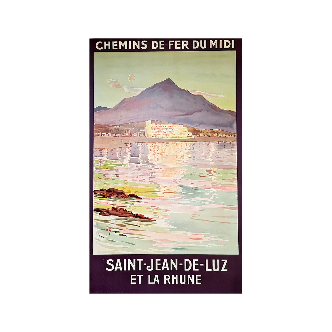 Affiche originale d'une beauté absolue et très rare, réalisée vers 1925 pour promouvoir le tourisme dans la région du Sud-Ouest de la France, plus précisément à Saint-Jean-de-Luz et sur la Rhune.