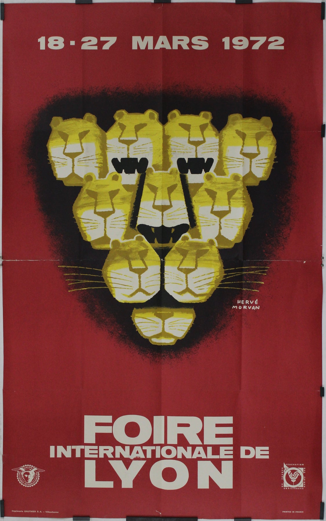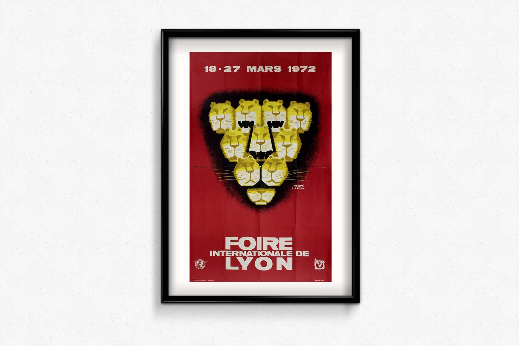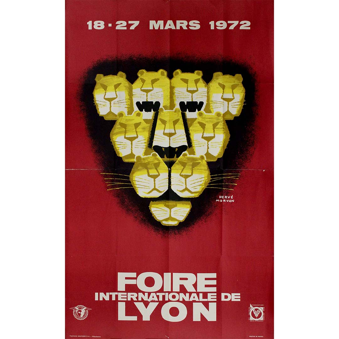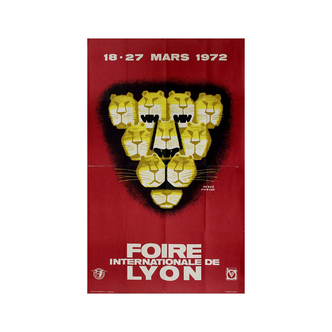 L'affiche originale de 1972 d'Hervé Morvan pour la "Foire Internationale de Lyon" est un exemple par excellence du graphisme des années 1970, mêlant couleurs vibrantes et composition dynamique pour capter l'attention du spectateur.