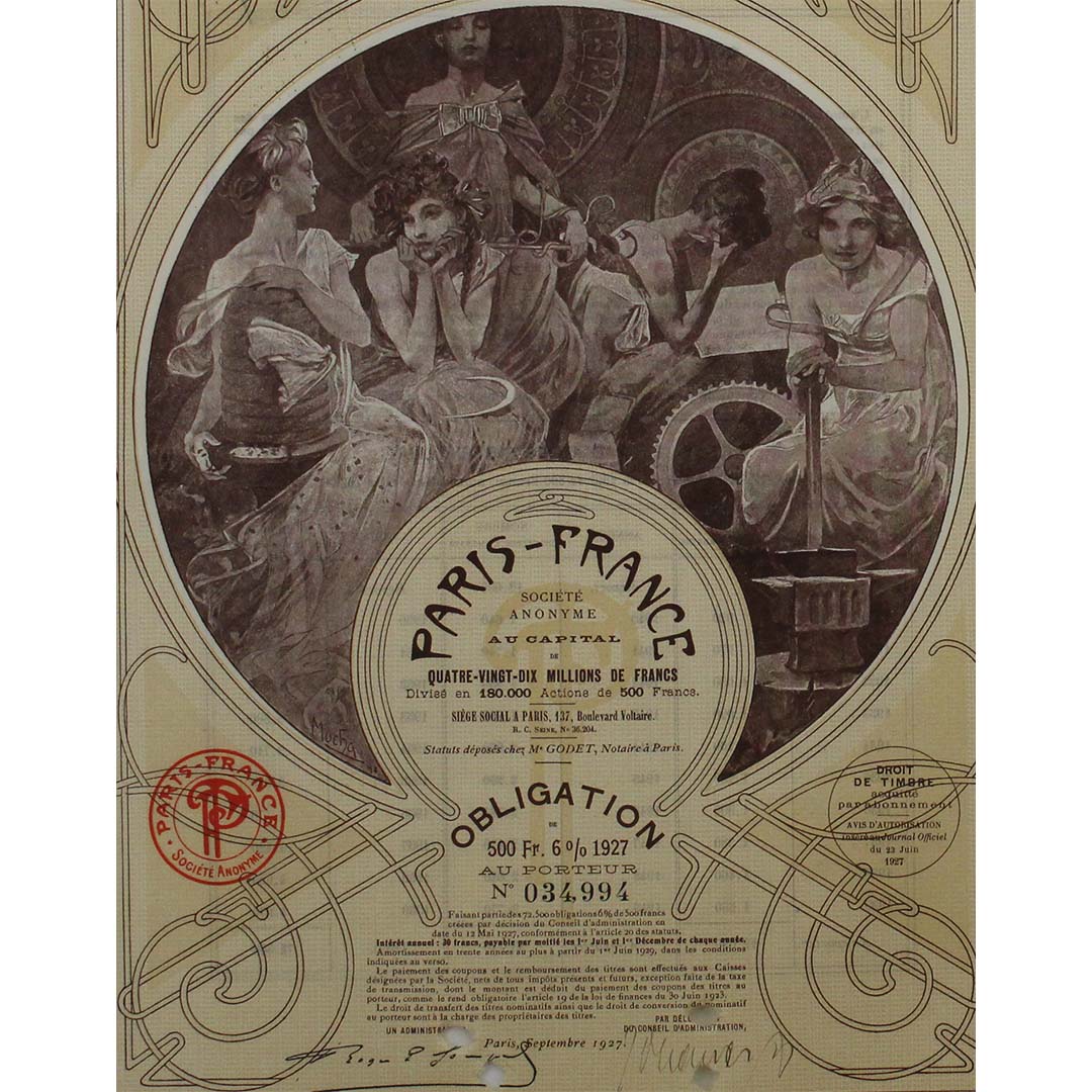 Émise durant une décennie d'optimisme économique précédant le krach de 1929, cette obligation incarne la convergence de l'art, du commerce et de la fierté nationale . Le dessin de Mucha nous rappelle que même les instruments financiers étaient perçus comme des occasions d'expression artistique et d'enrichissement esthétique.