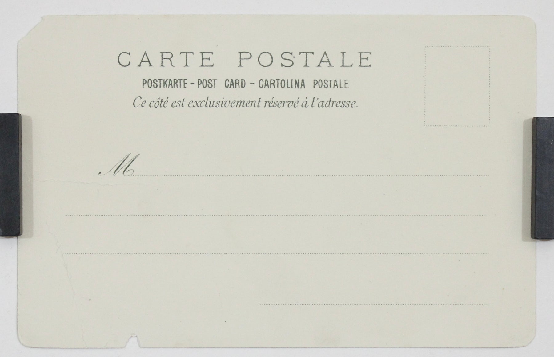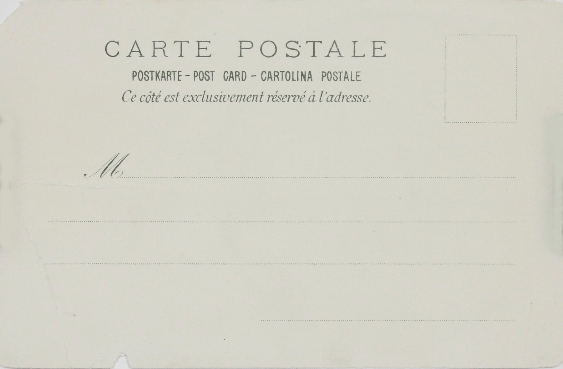 Au verso, la carte conserve son format classique de « Carte Postale » française, avec un espace réservé à l'adresse uniquement — typique des cartes postales du début du XXe siècle — soulignant ainsi sa fonction première d'œuvre d'art et de document éphémère.