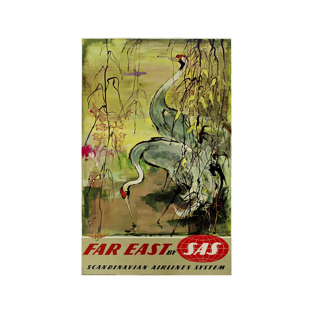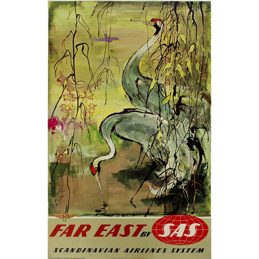 Cette affiche sert non seulement de publicité pour un itinéraire de voyage précis, mais aussi d'œuvre d'art reflétant l'esprit de l'après-guerre. Dans les années 1950, le monde s'interconnectait de plus en plus et le transport aérien s'imposait comme un moyen prestigieux et aventureux d'explorer des contrées lointaines. SAS s'est positionnée comme un chef de file de cette nouvelle ère du voyage international, proposant des liaisons qui ont ouvert l'Extrême-Orient aux voyageurs scandinaves et européens.