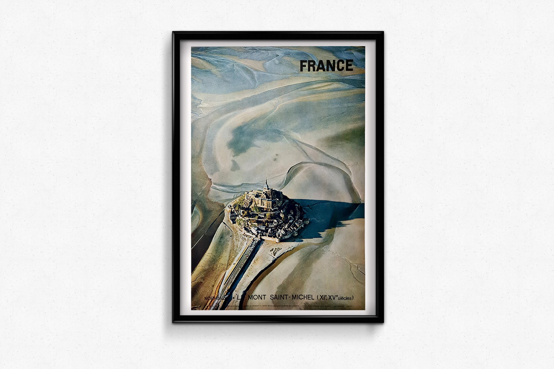 Cette affiche est bien plus qu'une simple publicité touristique ; c'est une œuvre d'art qui capture la magie du Mont-Saint-Michel. Avec sa typographie minimaliste et ses images saisissantes, elle invite intemporellement à découvrir l'une des destinations les plus enchanteresses de France.