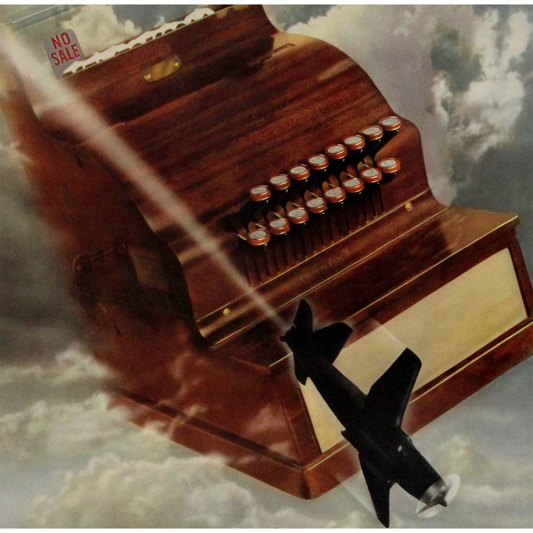 Saisissante, surréaliste et directe, cette affiche originale de 1947, conçue par Victor B. Wells, est un rare exemple de communication industrielle américaine d'après-guerre, mêlant métaphore visuelle percutante et urgence civique. Un avion de chasse noir pique du nez à travers des nuages orageux et s'écrase symboliquement sur une caisse enregistreuse volante, qui affiche le message : « PAS DE VENTE ».