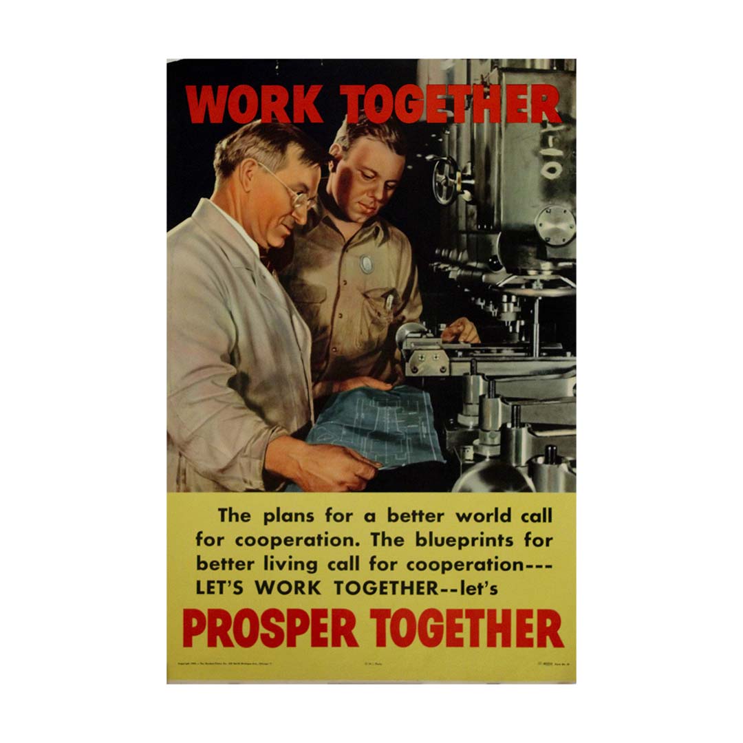 Ce message a trouvé un écho profond à une époque où les nations jetaient les bases d'institutions mondiales telles que les Nations Unies et le système économique de Bretton Woods. Alors que les soldats rentraient chez eux et que les économies passaient de la production de guerre à l'industrie de temps de paix, la coopération entre gouvernements, entreprises et travailleurs était perçue comme essentielle pour éviter une nouvelle crise économique comme la Grande Dépression. L'affiche a renforcé cette vision, rappelant à tous que l'effort collectif était la clé d'une prospérité durable.