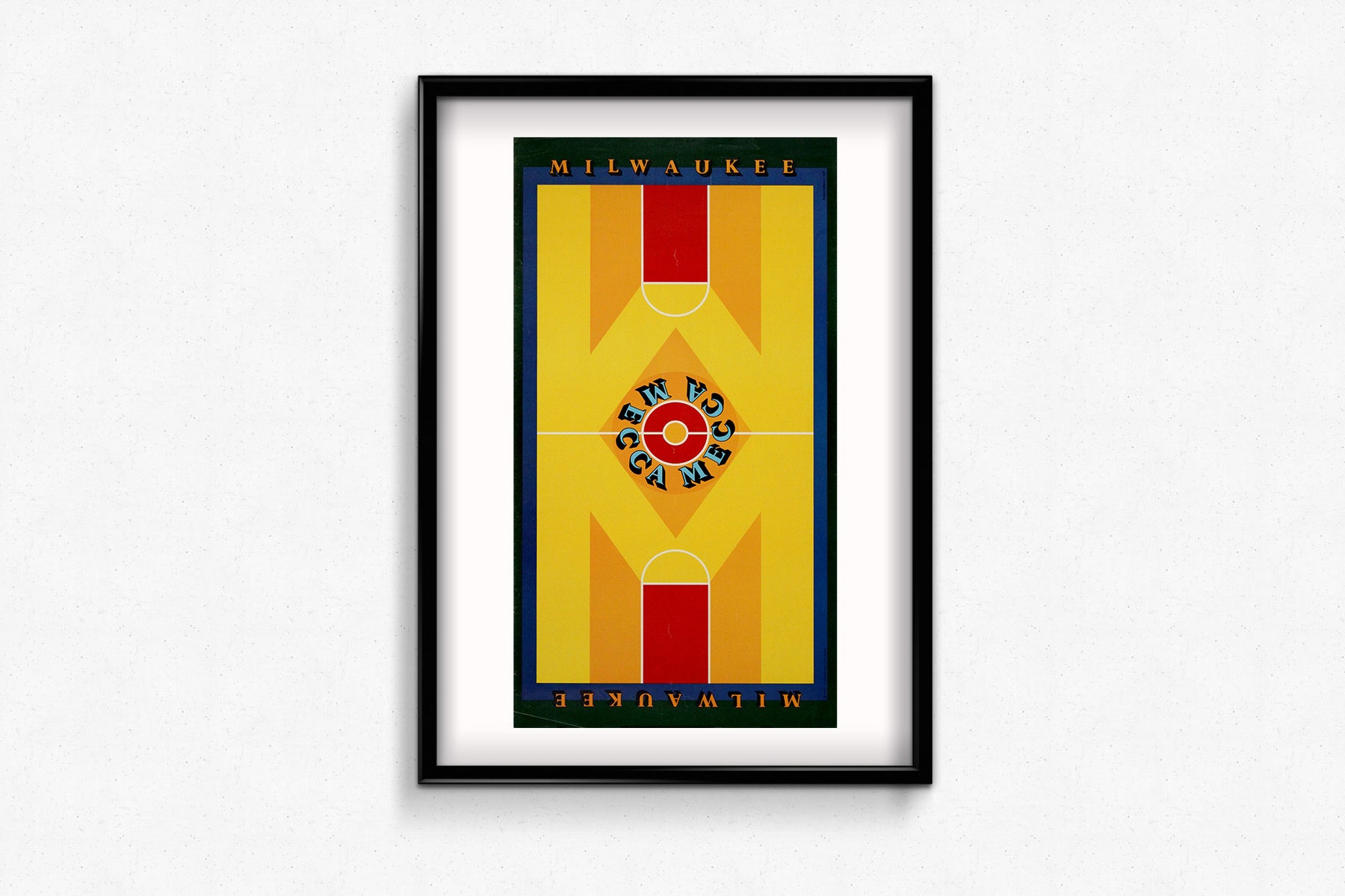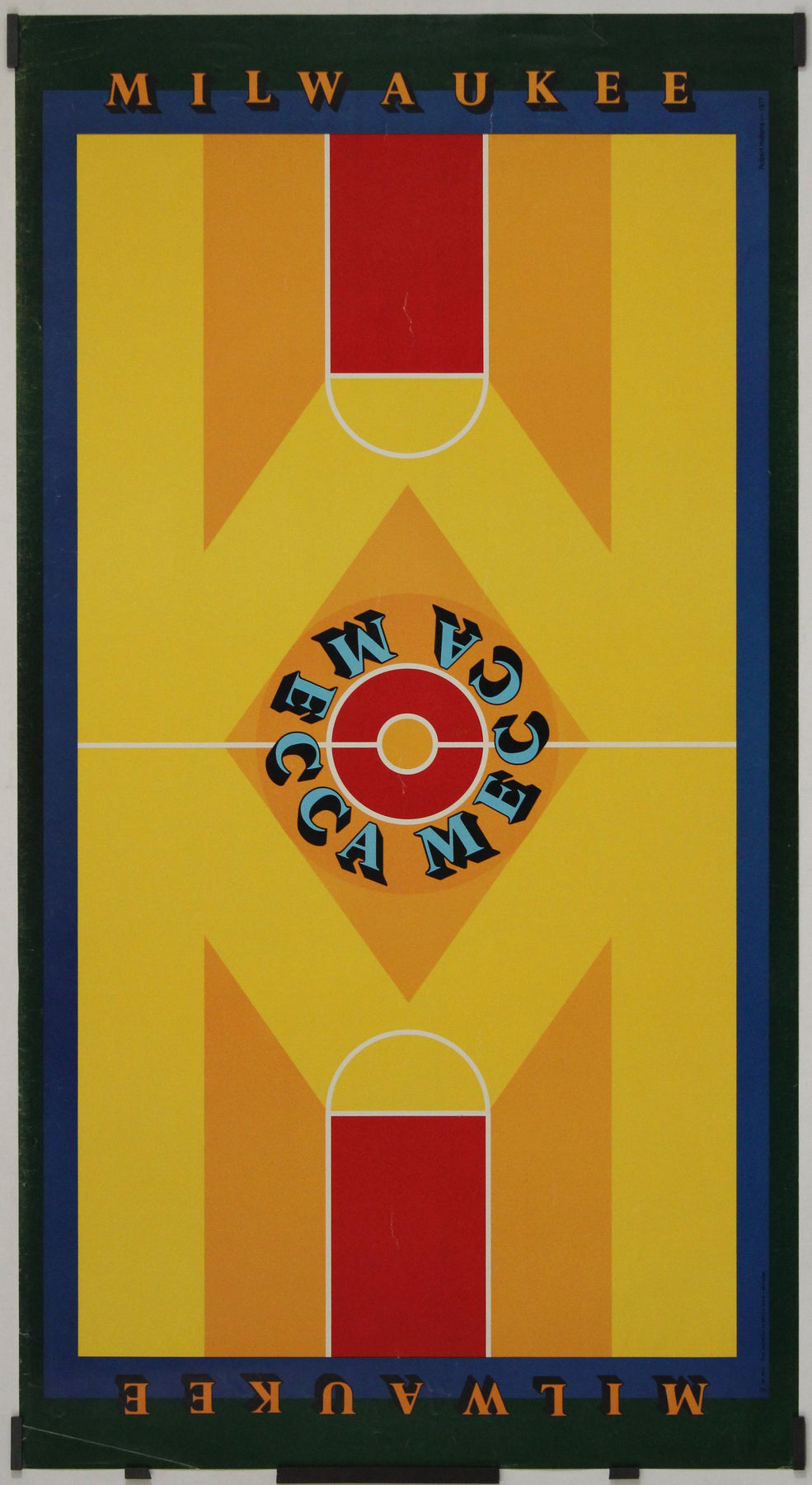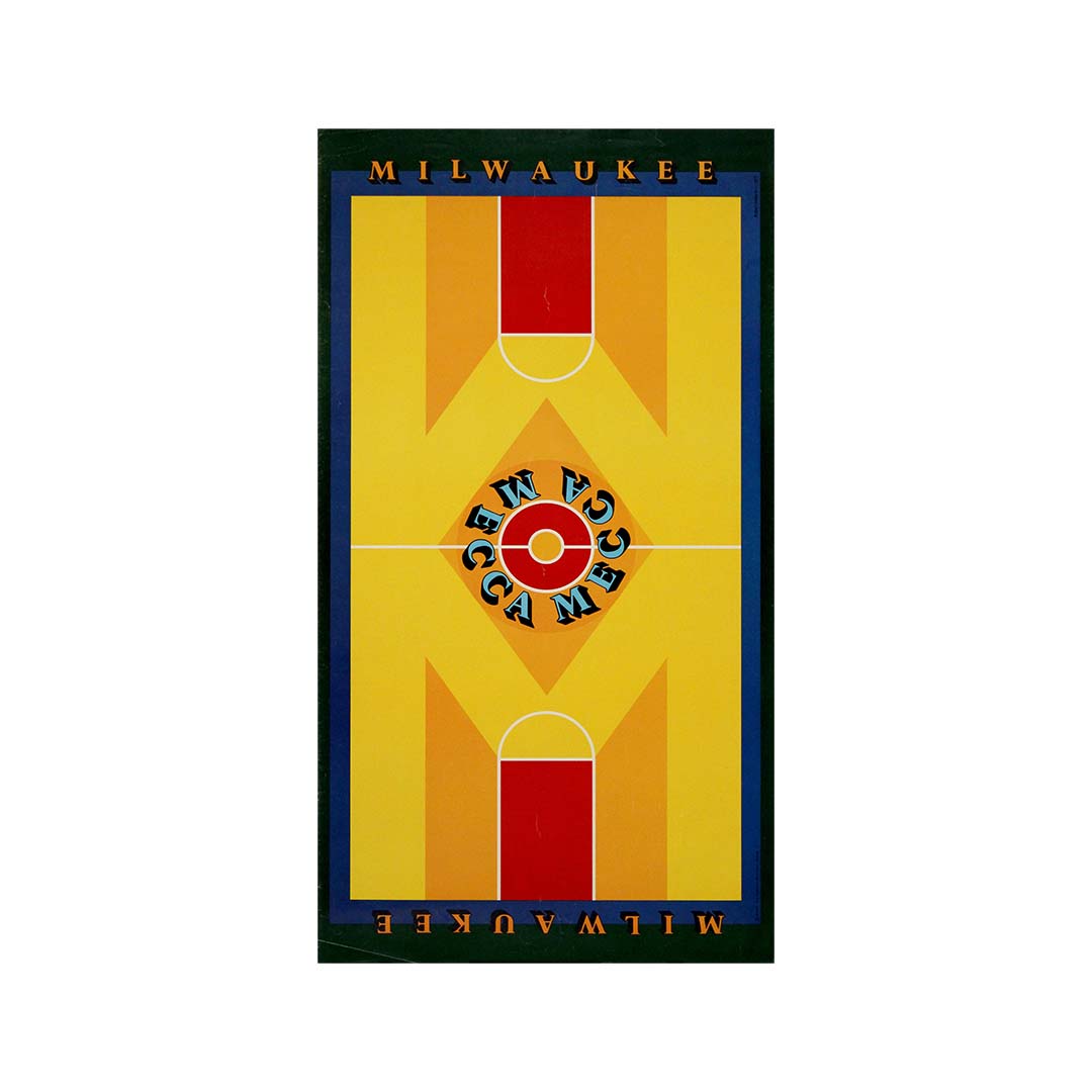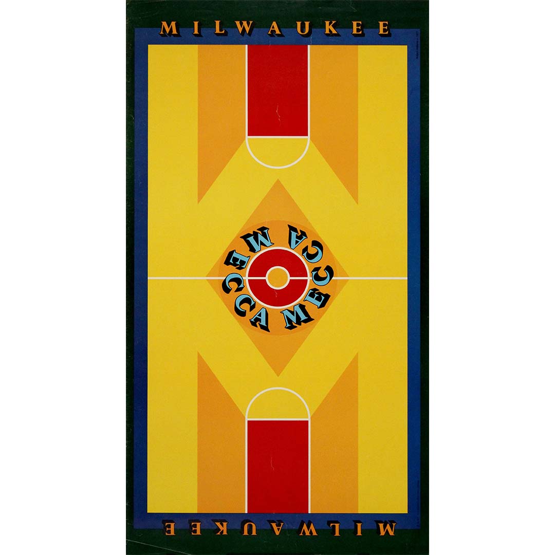 L'affiche « Milwaukee MECCA MECCA » de 1977, réalisée par Robert Indiana, est un hommage audacieux au design unique du sol du Milwaukee Exposition Convention Center Arena (MECCA). Figure emblématique du mouvement Pop Art, Robert Indiana est surtout connu pour sa série « LOVE », et son œuvre explore souvent les thèmes de la culture américaine et de l'art graphique.