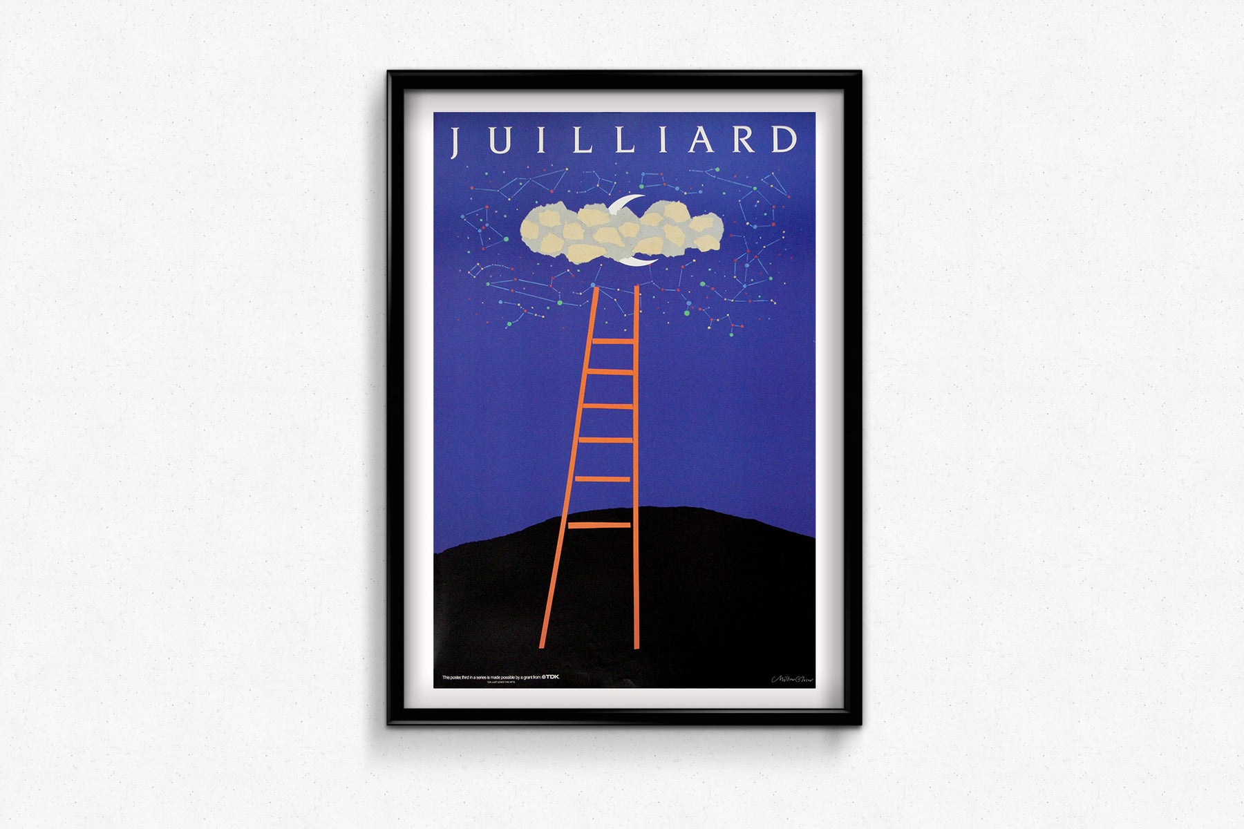 Commandée avec le soutien de TDK, cette affiche s'inscrivait dans une campagne visant à positionner Juilliard non seulement comme un conservatoire, mais aussi comme un tremplin vers une expression artistique transcendante. La palette de Glaser – sobre et profonde – évoque à la fois mystère et clarté. À l'instar d'une partition musicale savamment composée, chaque élément est placé avec intention.