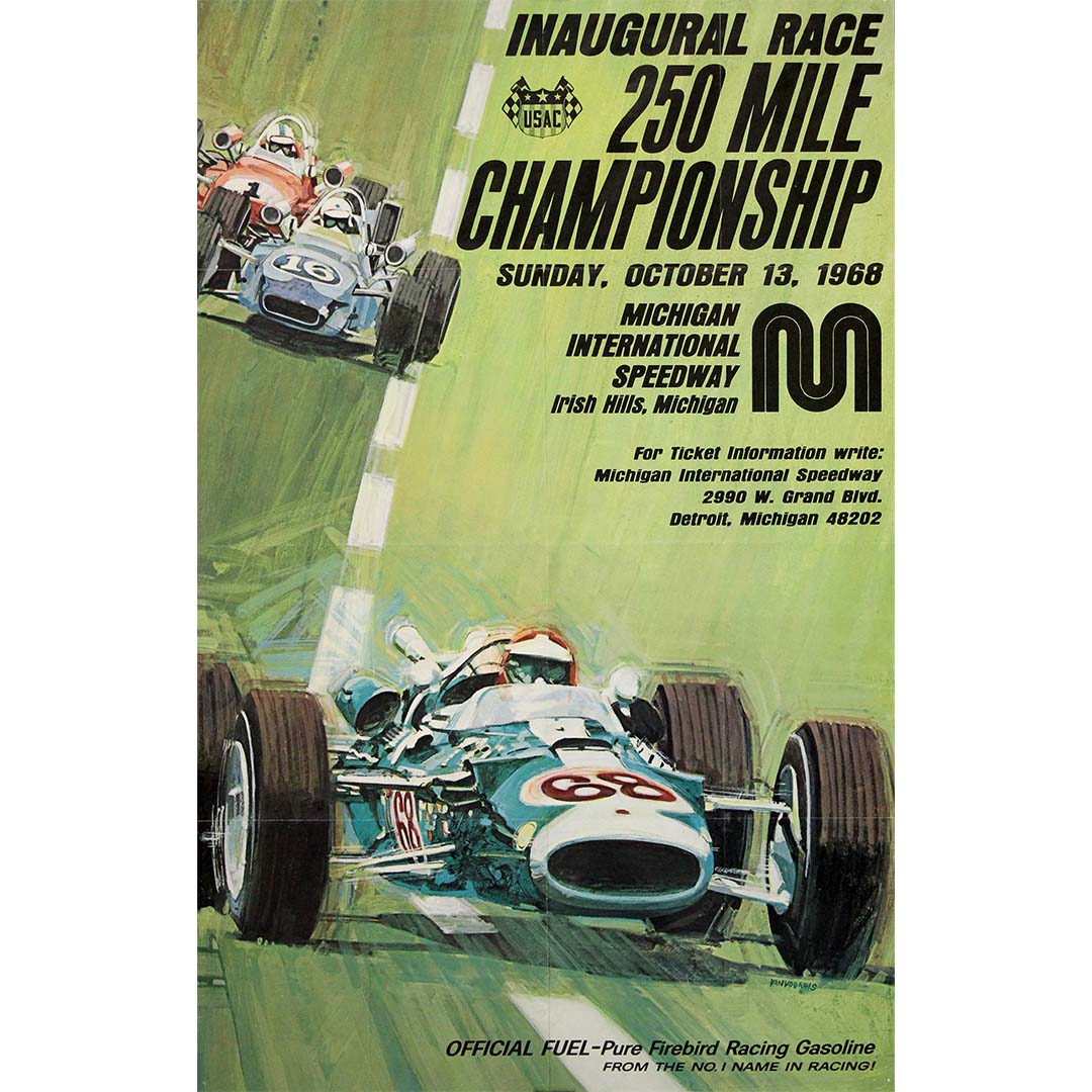 Aujourd'hui, cette affiche constitue un exemple remarquable du graphisme automobile de la fin des années 1960 et un document historique marquant les débuts de la compétition sur le Michigan International Speedway. Elle séduit les collectionneurs d'objets liés au sport automobile, de publicités vintage et d'illustrations automobiles.