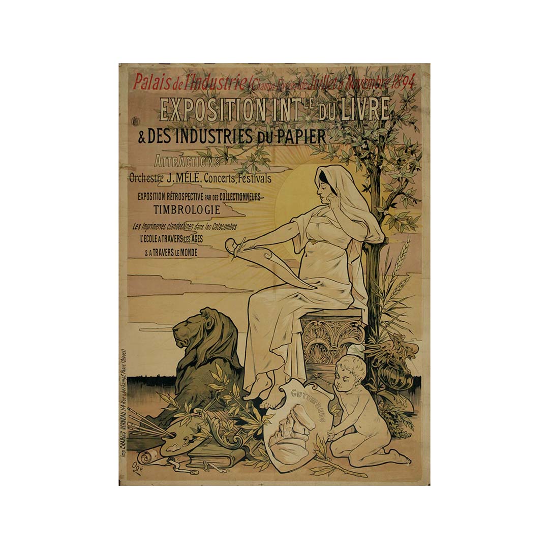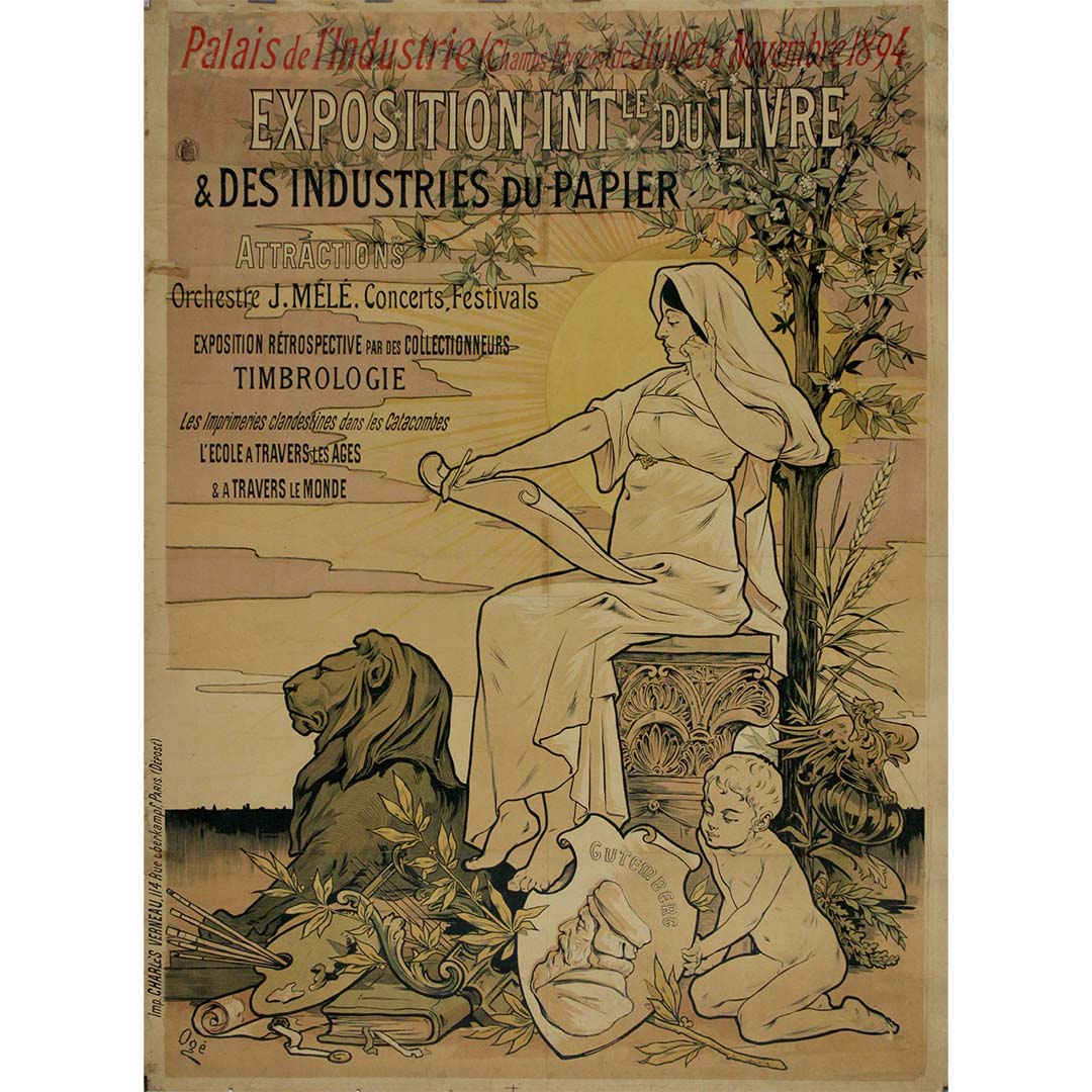 Créée en 1894, l'affiche originale d'Ogé pour l'Exposition internationale du livre et des industries du papier témoigne du dynamisme de la scène artistique française de la Belle Époque. Destinée à promouvoir cette exposition internationale consacrée au livre et aux industries du papier, l'affiche d'Ogé incarne l'esprit d'innovation et d'échange culturel qui caractérisait l'événement.