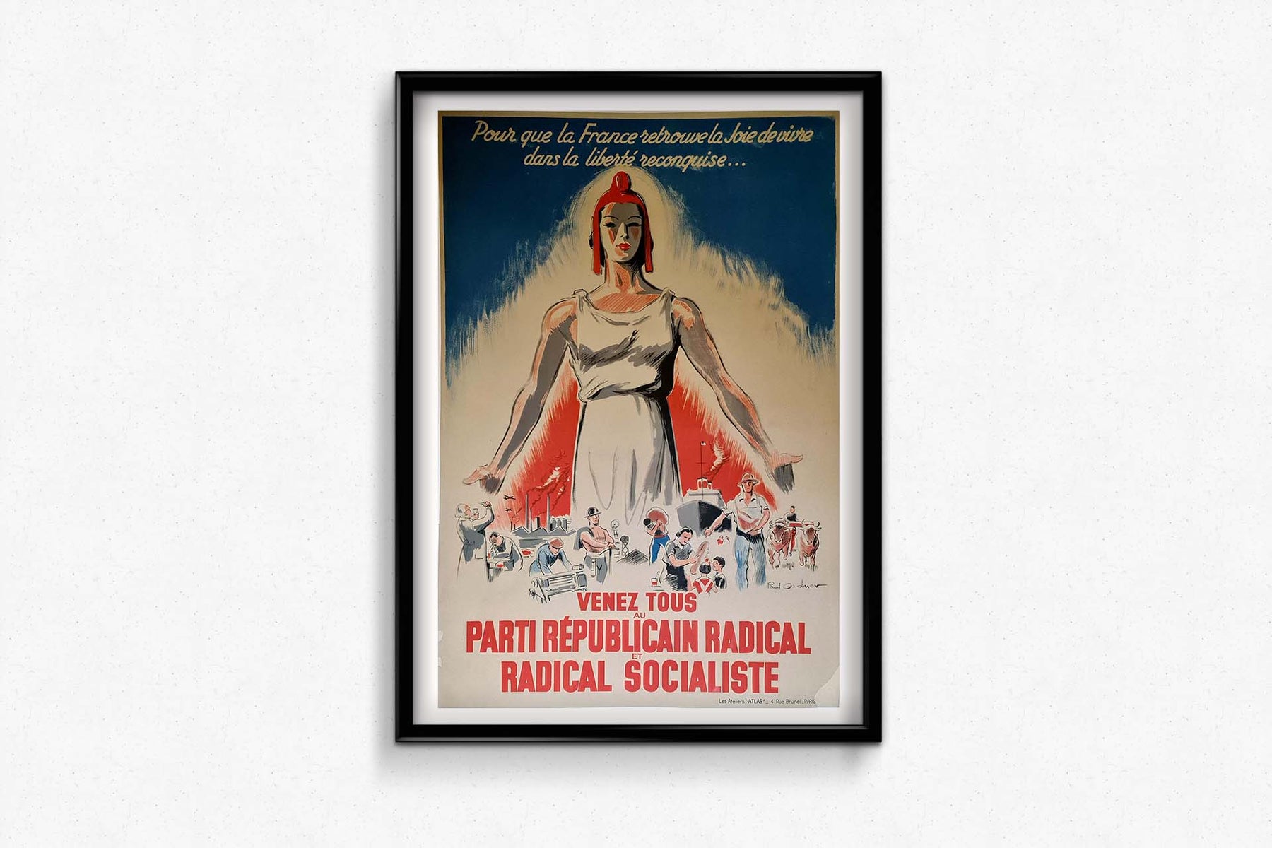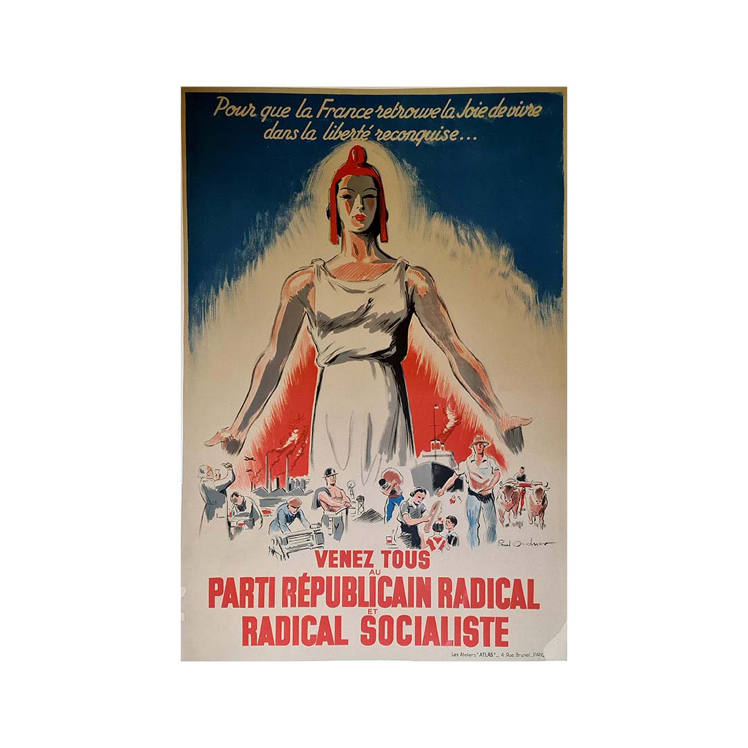 Une très belle et rare affiche, réalisée par Paul Ordner 🇫🇷 (1901-1969), illustrateur et dessinateur de presse français, pour le Parti radical en 1945.