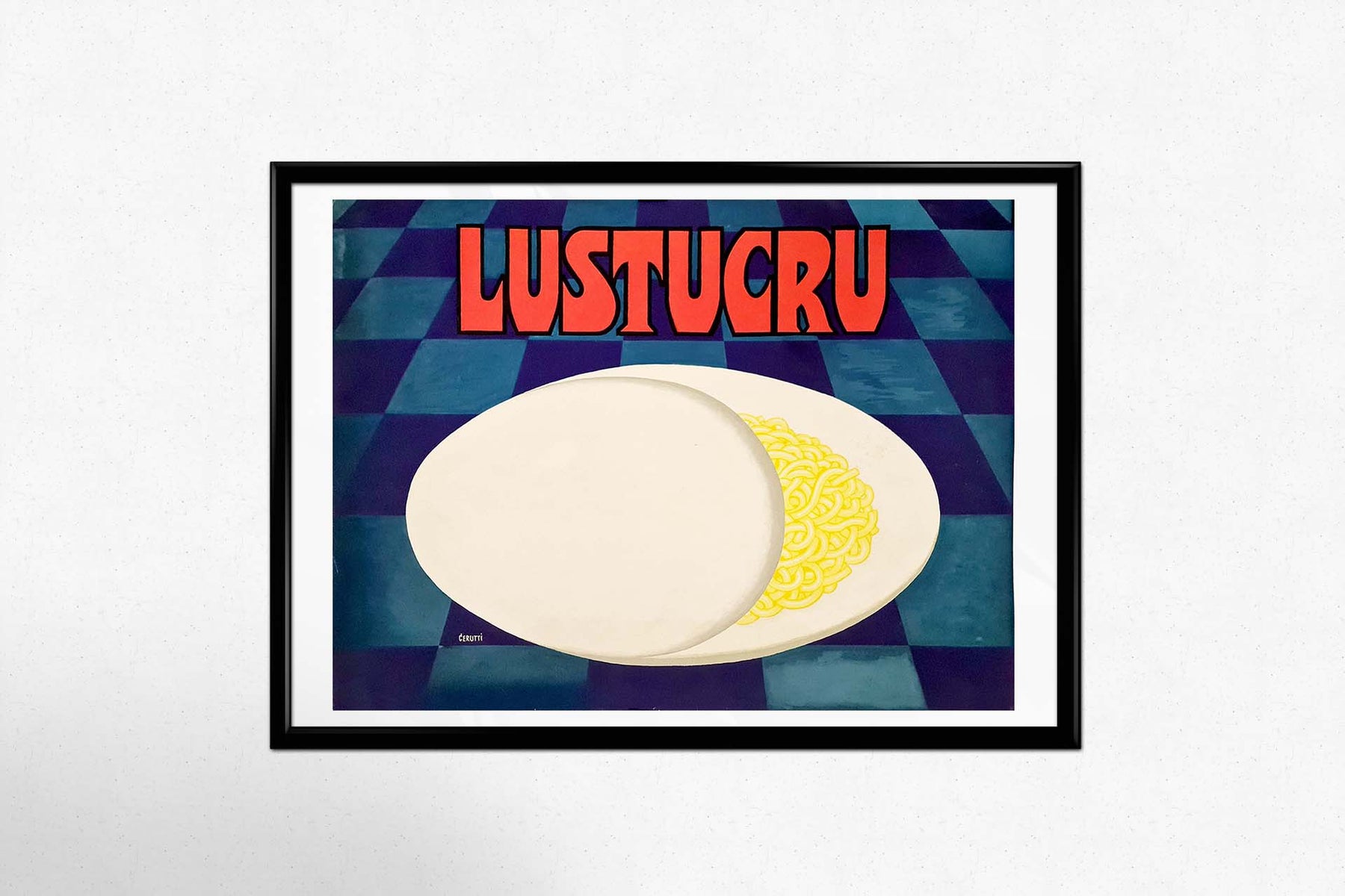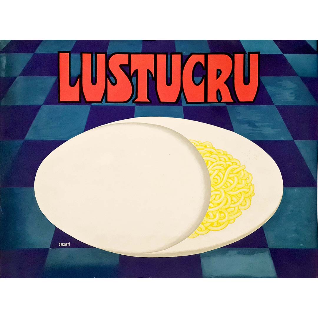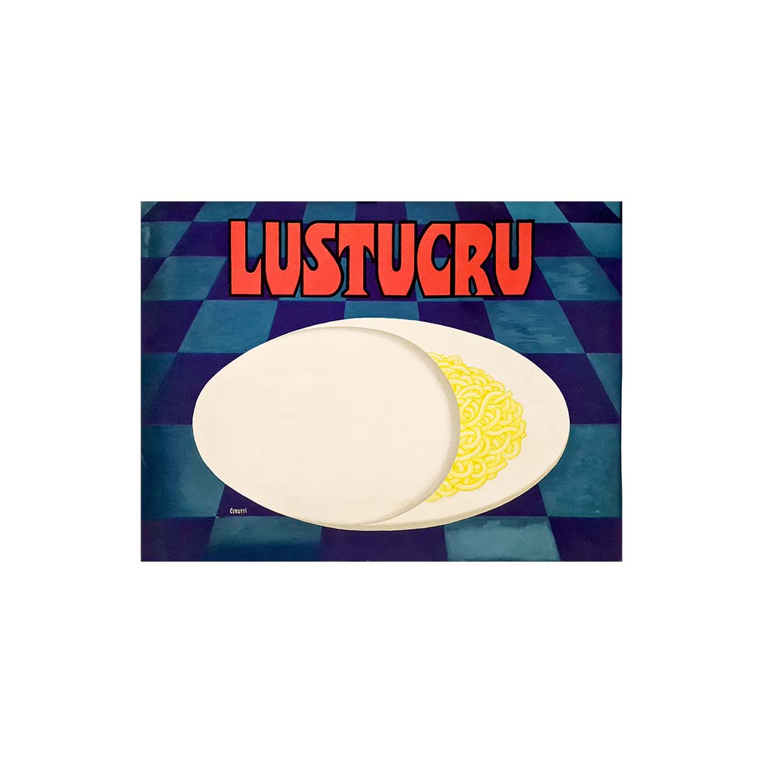 Magnifique projet d'affiche à la gouache et à l'aquarelle, signé Cerutti pour la marque Lustucru.